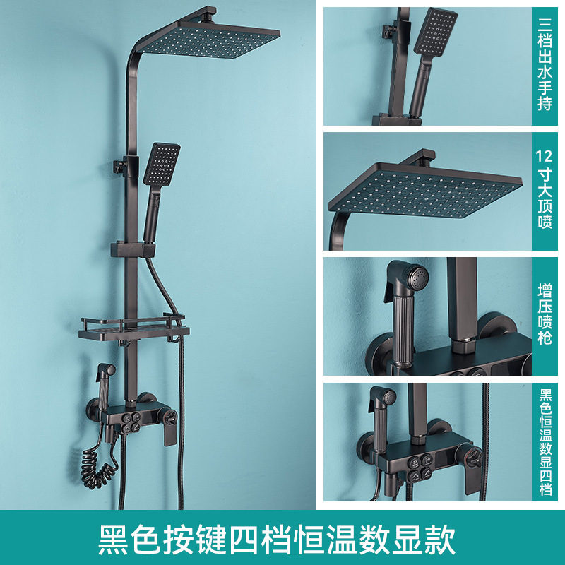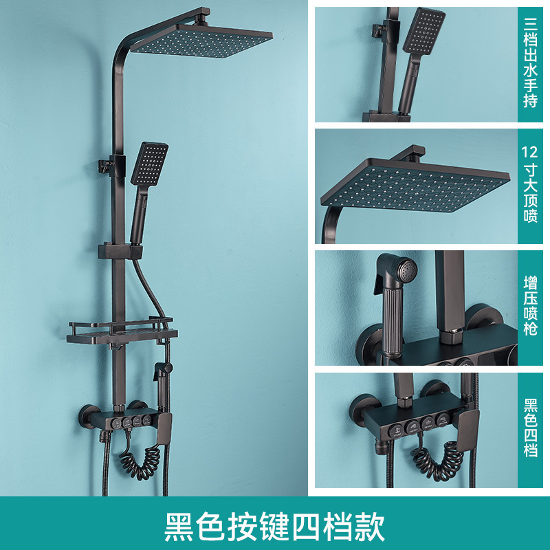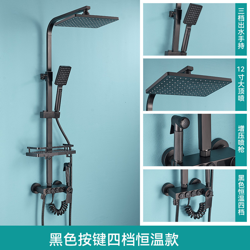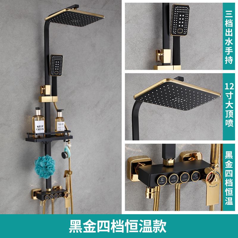 • 판타지 블랙 골드 버튼 4 기어 일정한 온도 샤워 세트