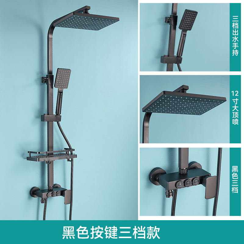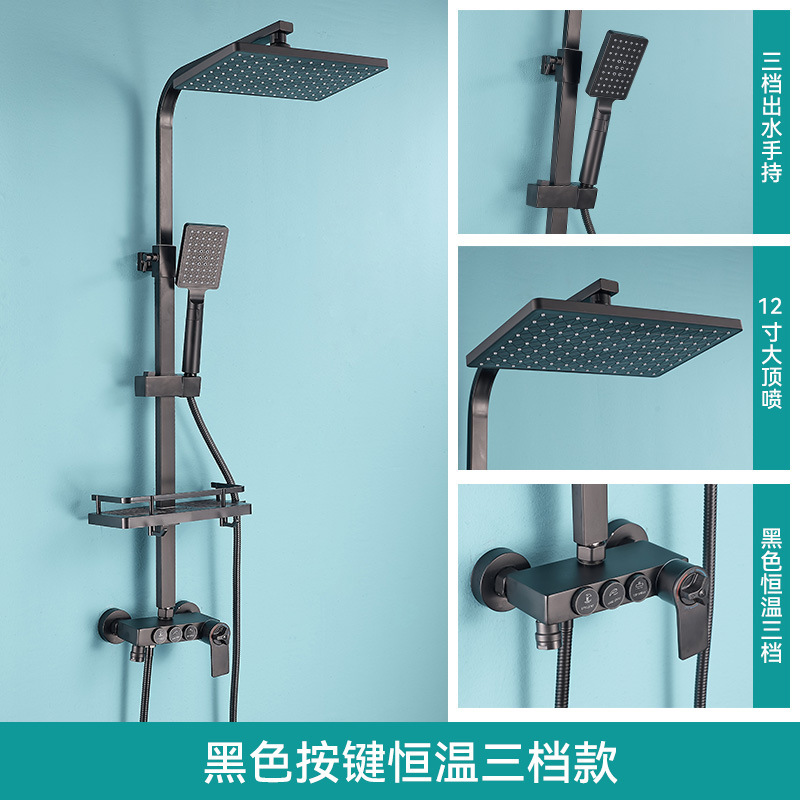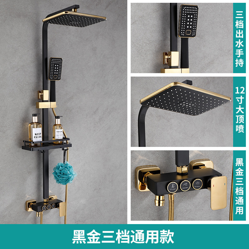 • 판타지 블랙 골드 버튼 3 기어 일정한 온도 샤워 세트