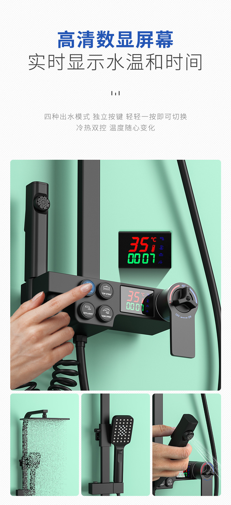 • 블랙 버튼 디지털 디스플레이 범용 샤워 헤드