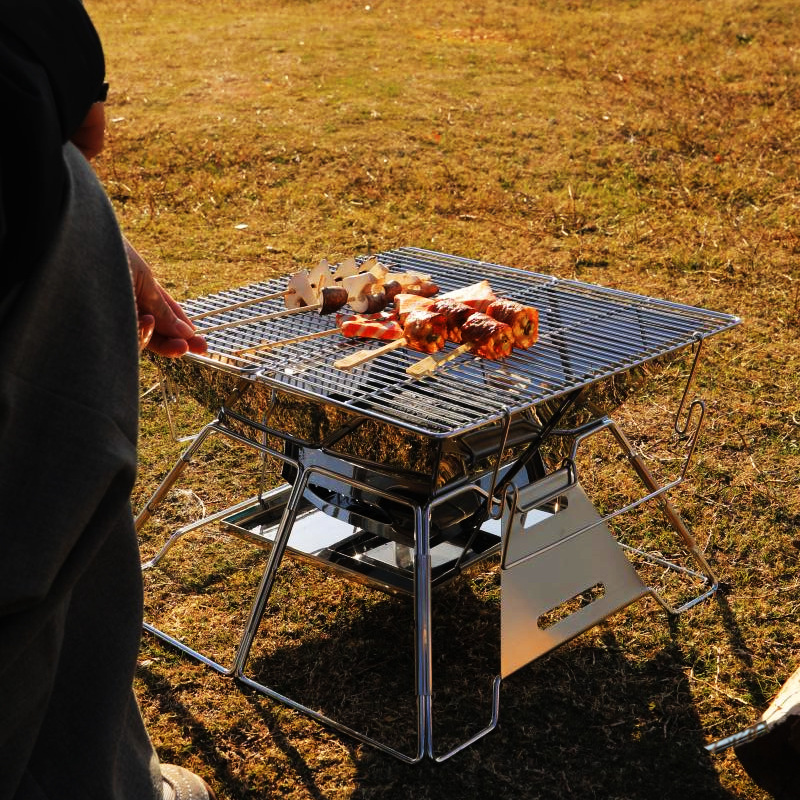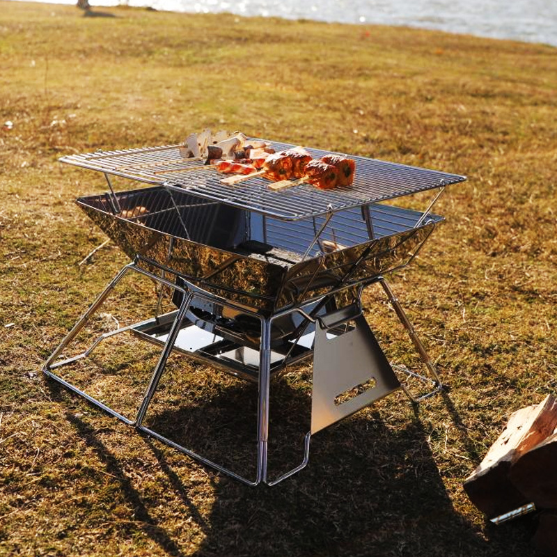 스테인레스 스틸 접이식 바베큐 스토브 야외 바베큐 스토브 캠핑 피크닉 바베큐 스토브 불타는 화재 랙 캠핑 불타는 불 테이블