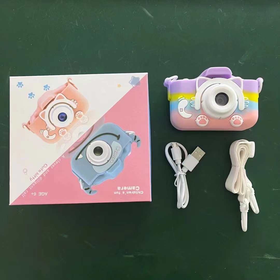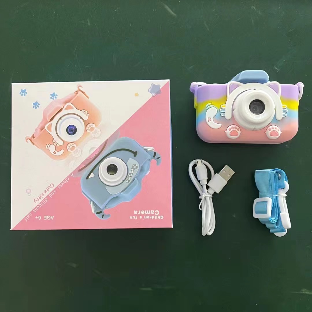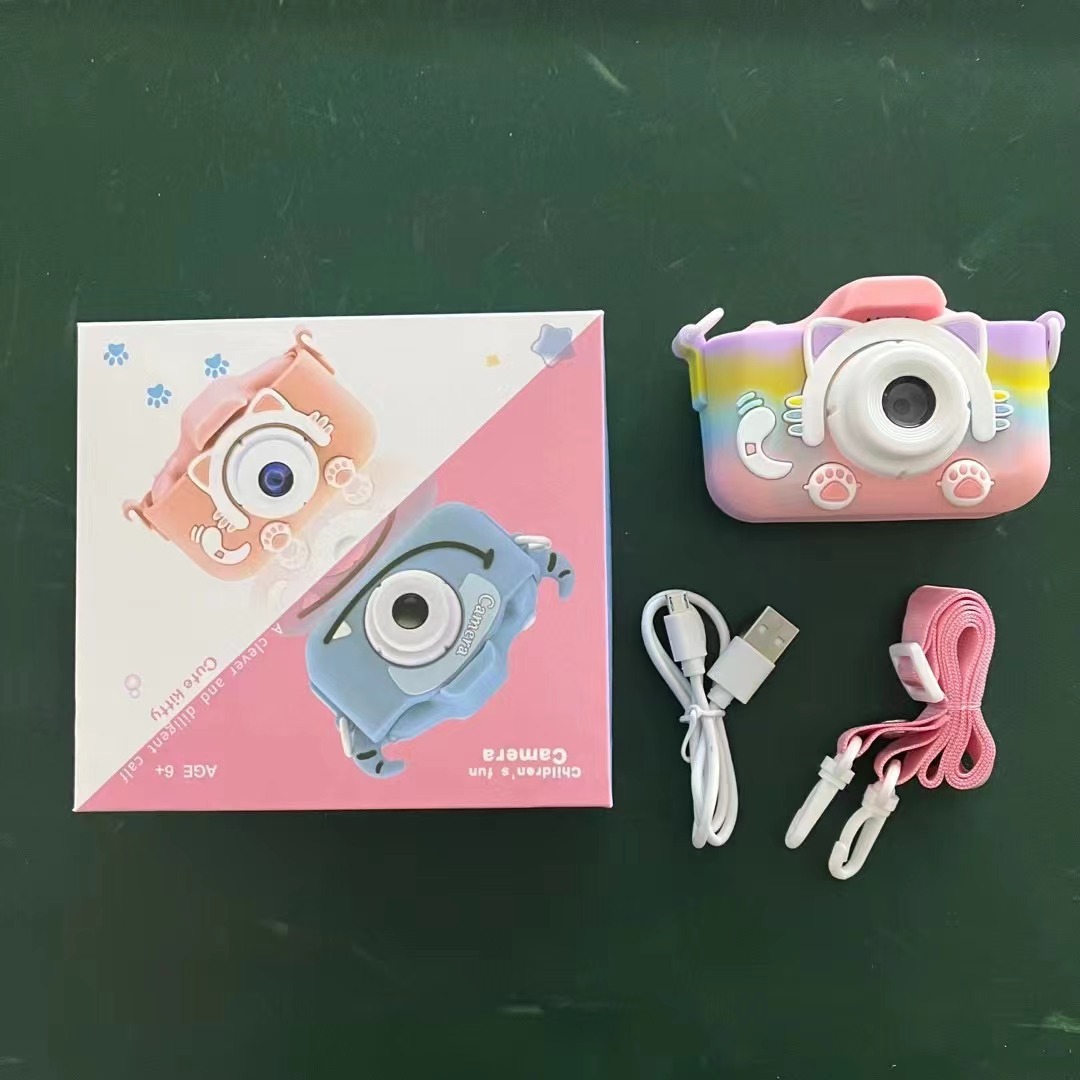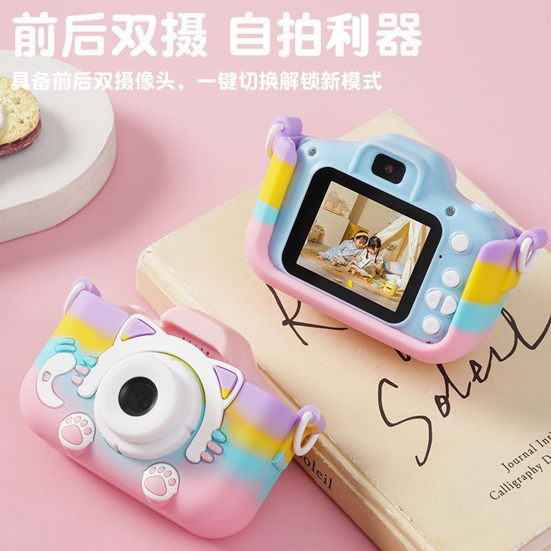 국경 간 어린이 카메라 컬러 고양이 실리콘 케이스 소녀를위한 미니 만화 디지털 카메라 HD 듀얼 카메라 사진 촬영 도매