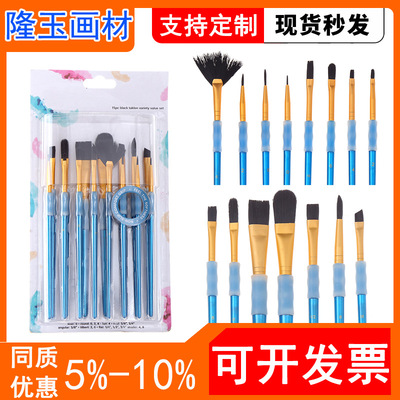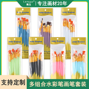 加工定制跨境15支塑料杆尼龙毛双泡壳包装画笔丙烯水彩笔美术用品