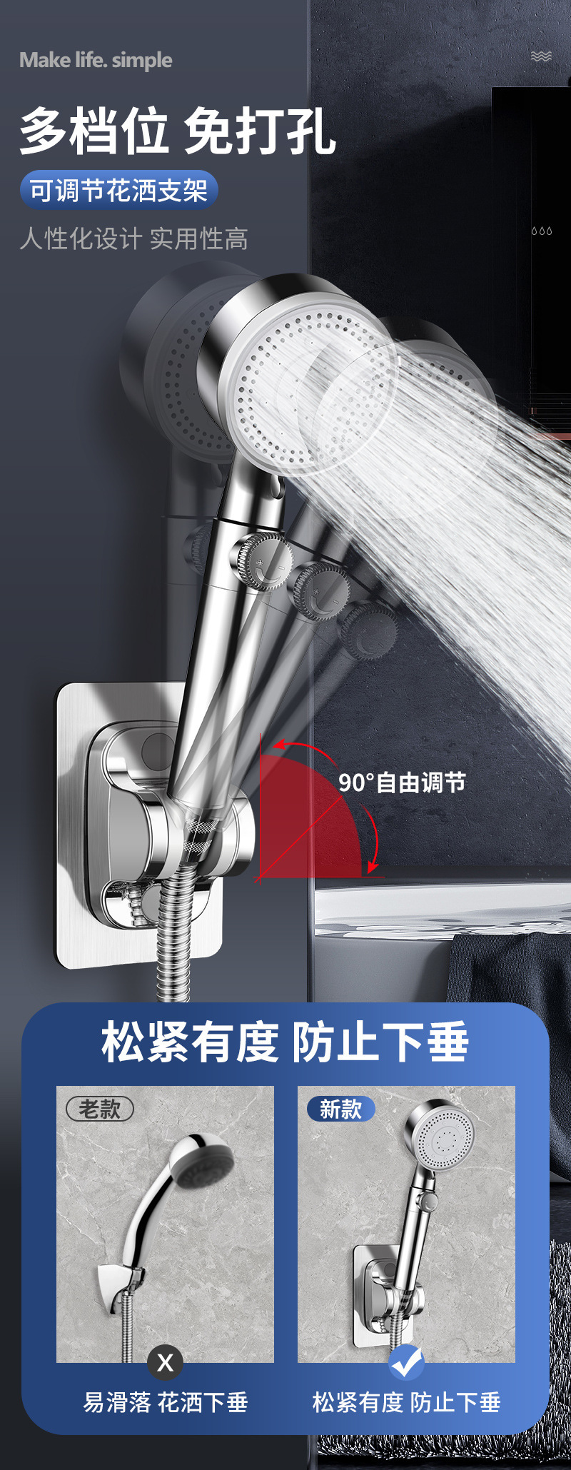 펀치없는 샤워 브래킷 조절 식 욕실 샤워 노즐 교수형 좌석 유니버설 비 고정 벽베이스 유물