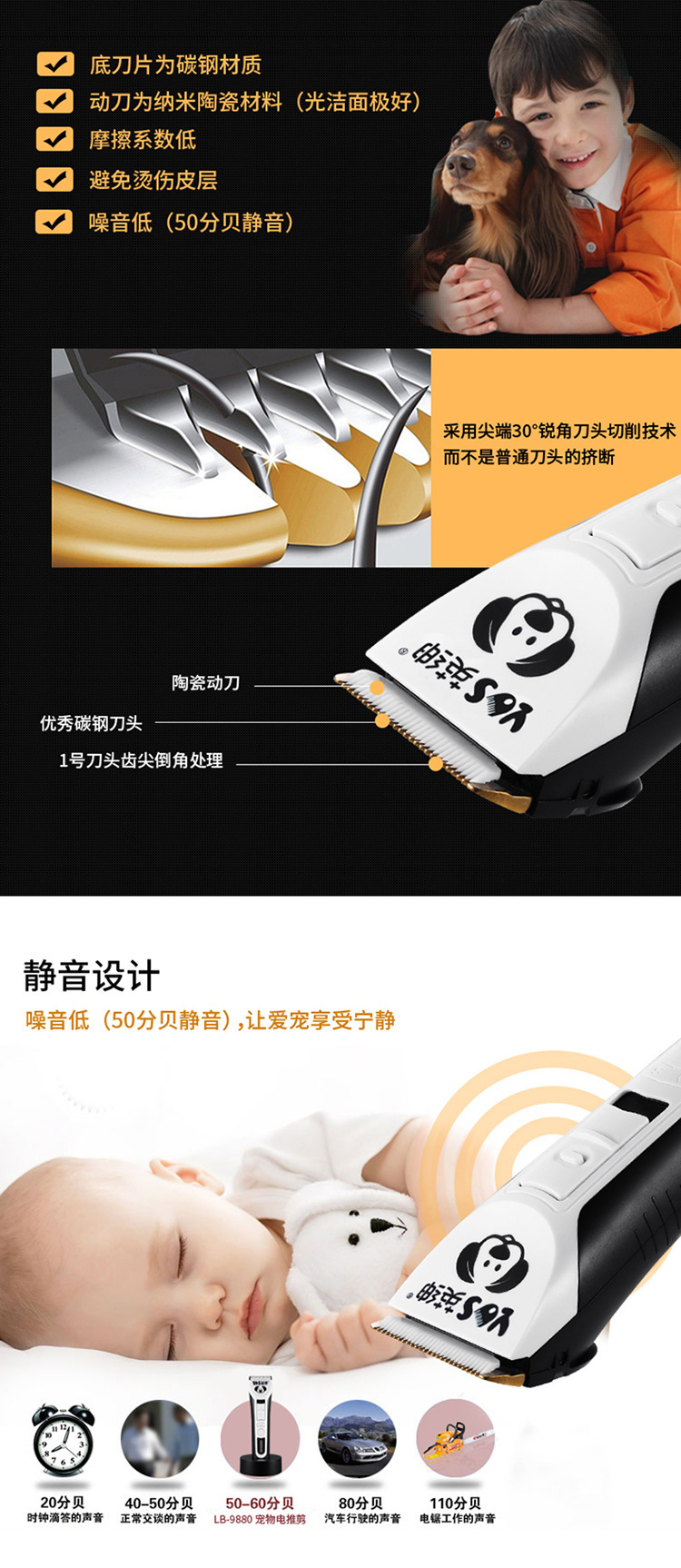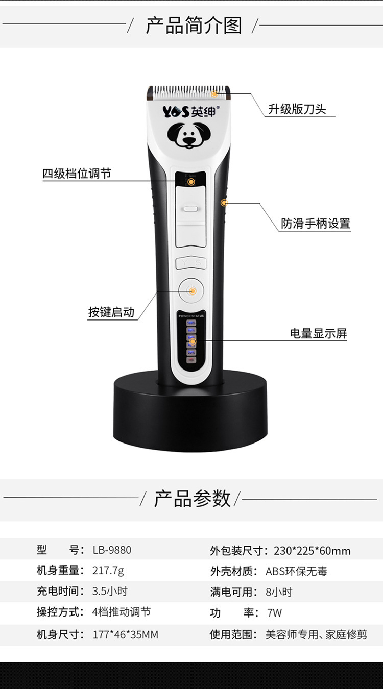 [영국 젠트리] 9880 머리 유지 대형 전기 가위 조절 나이프 헤드 고양이와 개 유니버설 2 기어 파워 애완 동물 전기 클리퍼