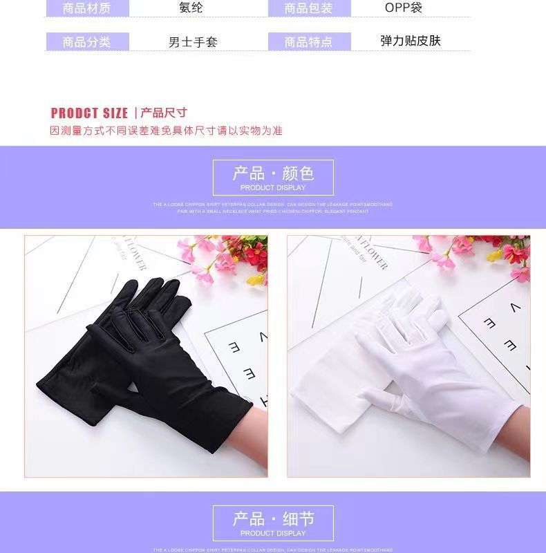 자외선 차단제 보석 성능 에티켓 스판덱스 높은 탄성 올 인 클루 시브 플러스 사이즈 핸드 럭셔리 장갑을 운전하는 남성용 흰색 장갑