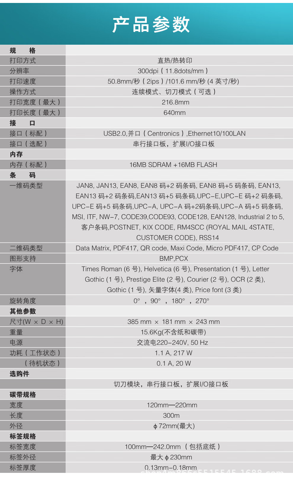• B-852-TS22-CN【300DPI】 표준 216mm 인쇄 폭
