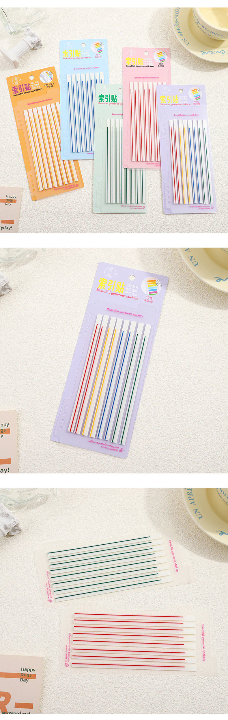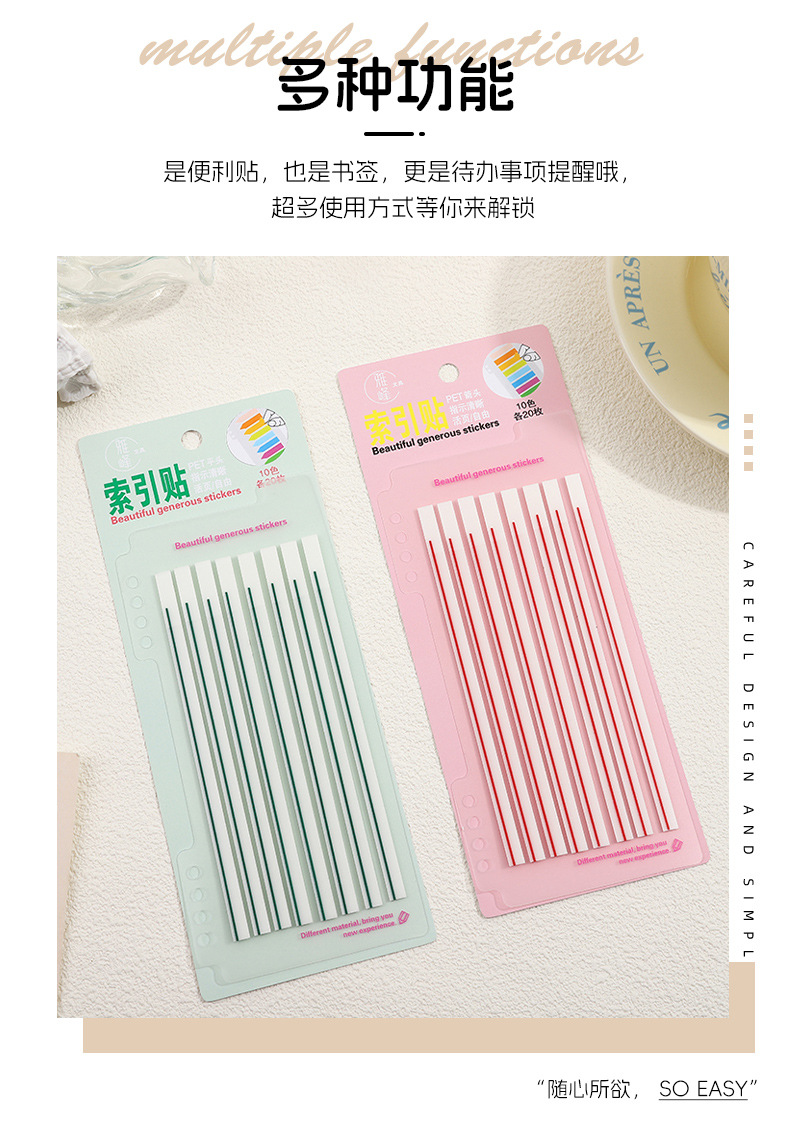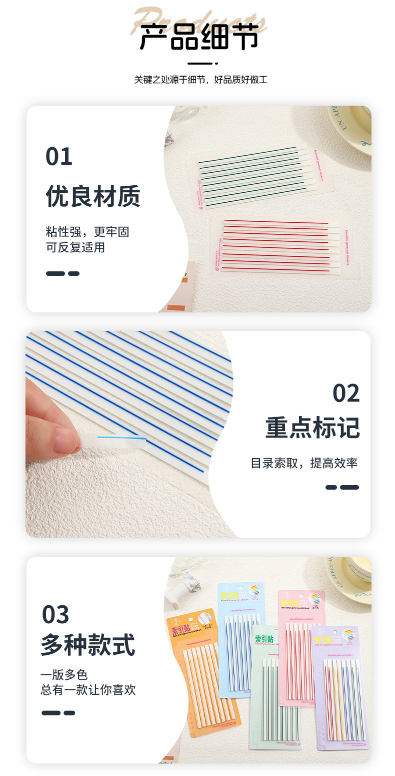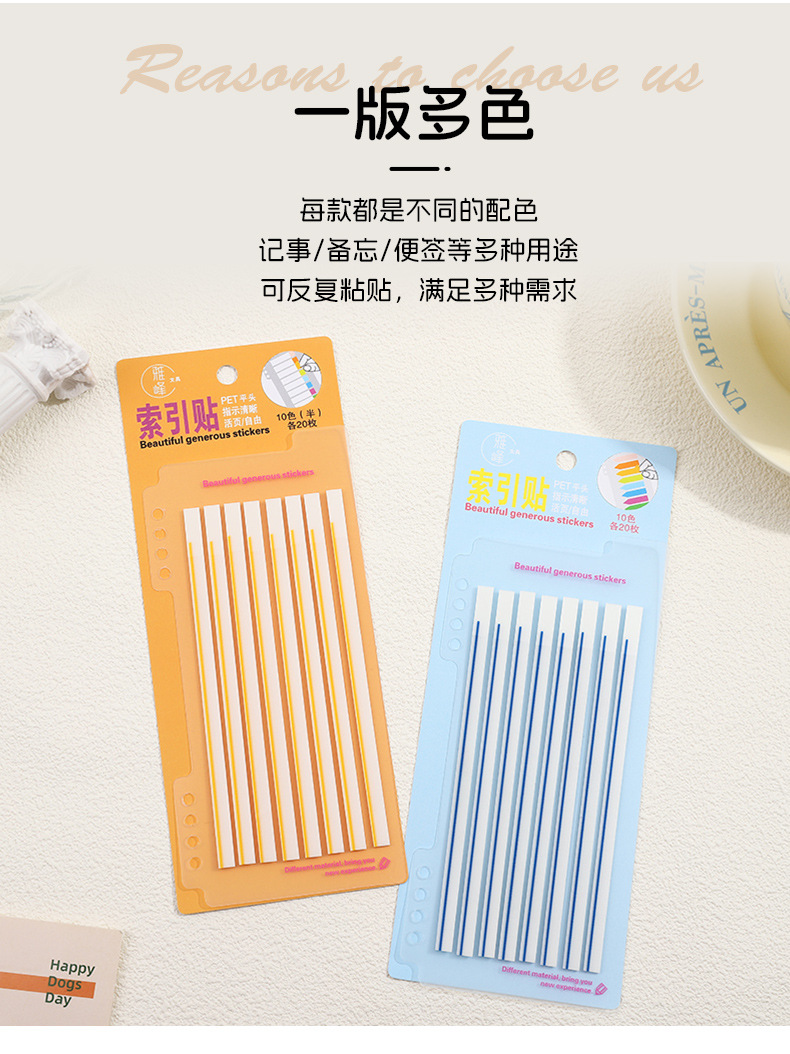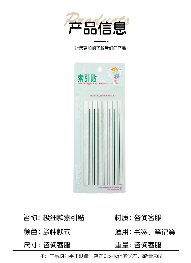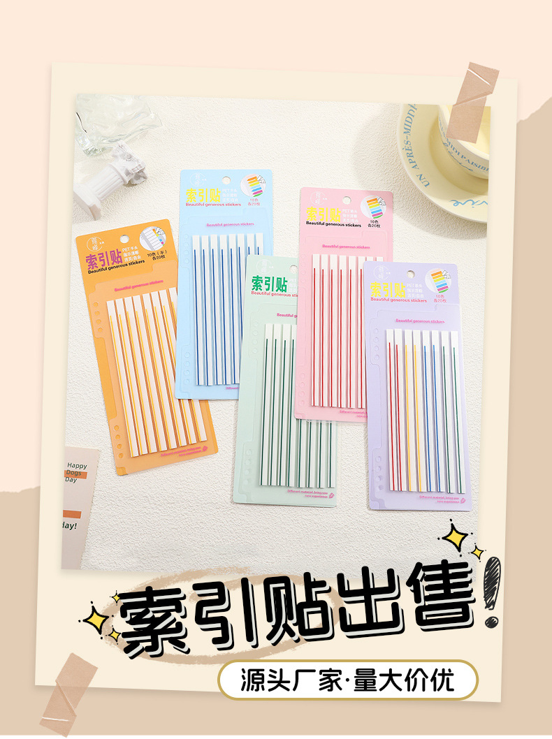 애완 동물 얇은 스트립 반투명 스크라이빙 스티커 메모 학교 용품 컬러 라인 그리기 키 형광 색인 노트