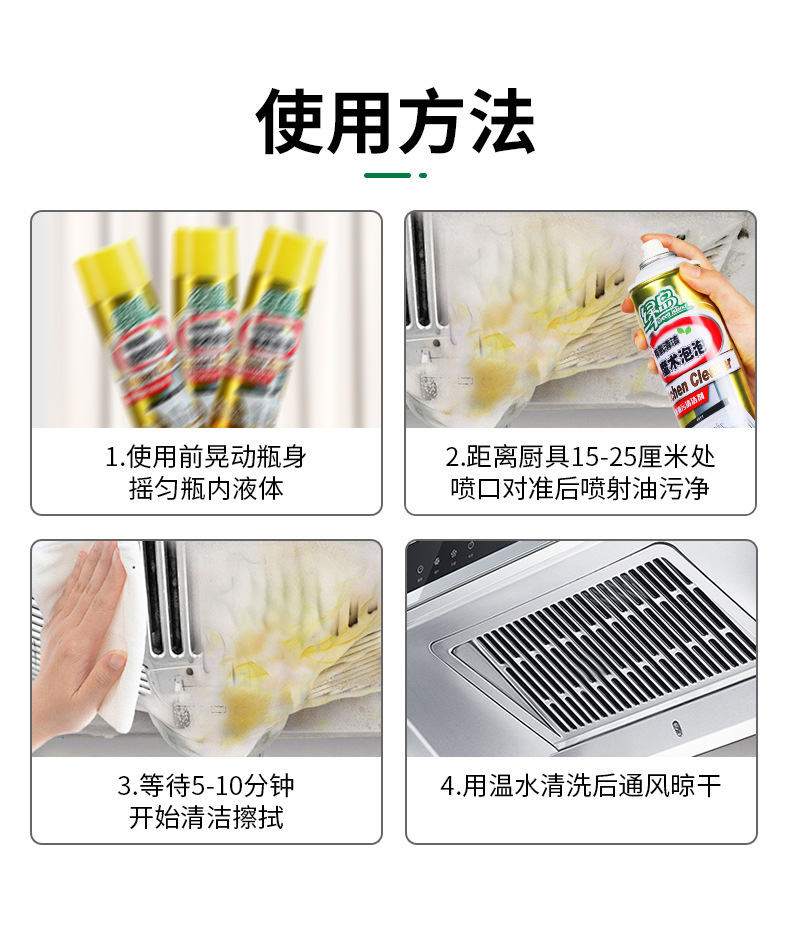 그린 아일랜드 주방 강력한 오일 얼룩 제거 매직 버블 중유 얼룩 청소 에이전트 홈 청소 범위 후드 오일 제거 에이전트