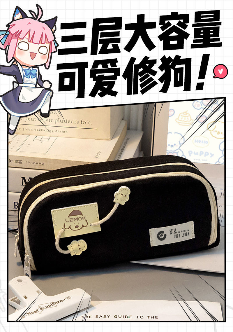 대용량 강아지 연필 케이스 소녀의 높은 모습에 일본 간단한 연필 케이스 중학교 학생 틈새 문구 가방