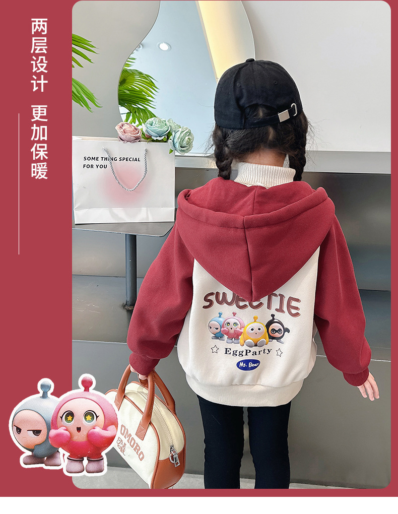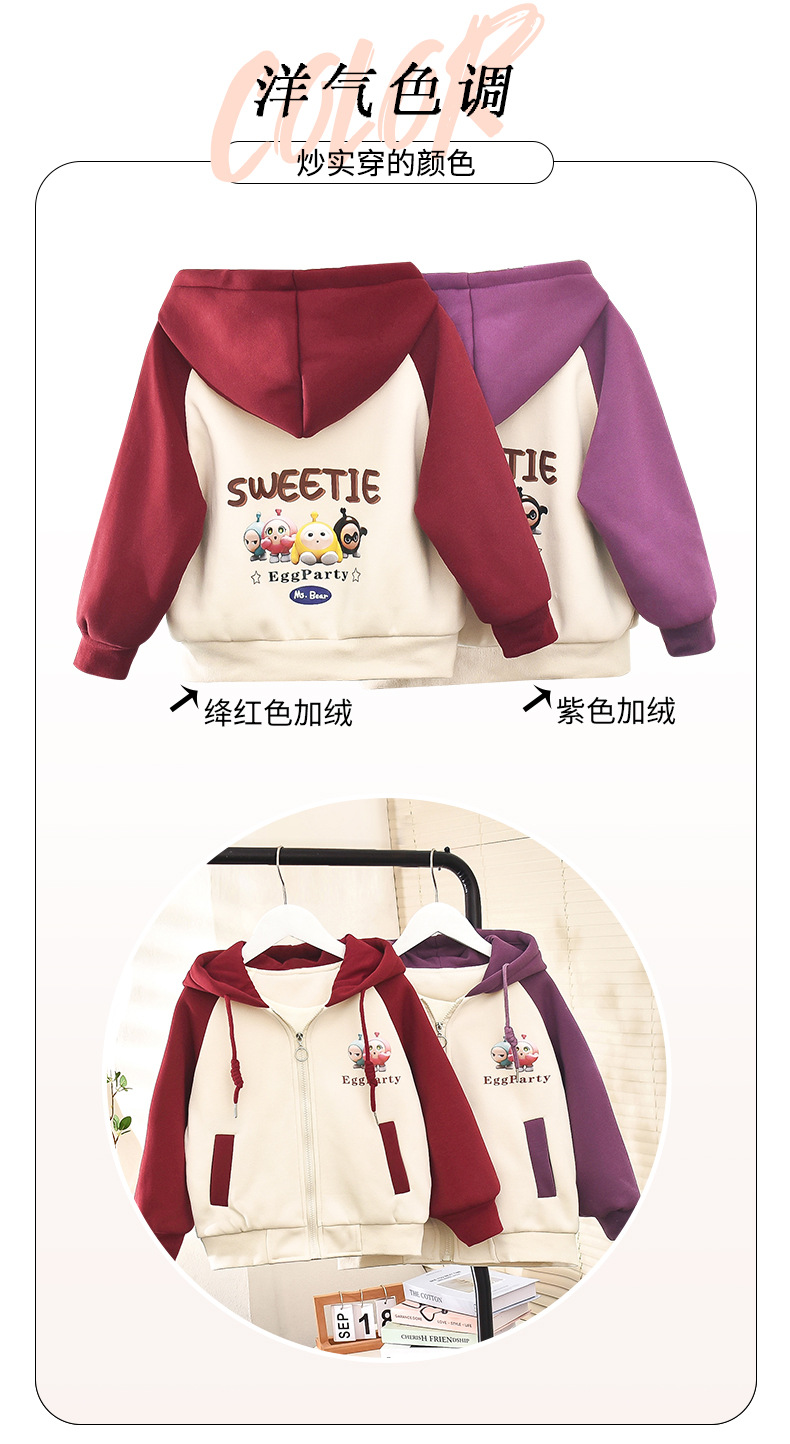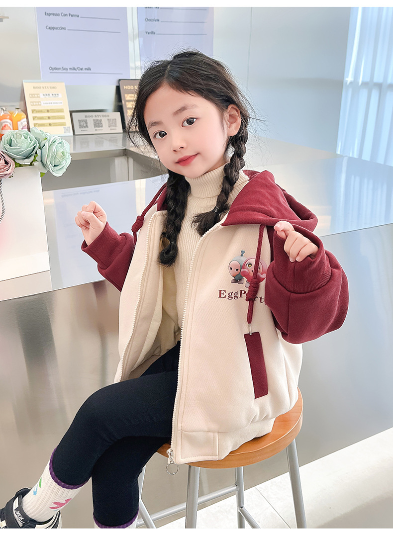 소년 소녀 겨울 스웨터 두꺼운 양털 재킷 더블 레이어 햇빛 벨벳 달걀 인형 지퍼 따뜻한 어린이 유치원스토어 가기