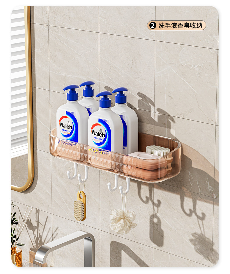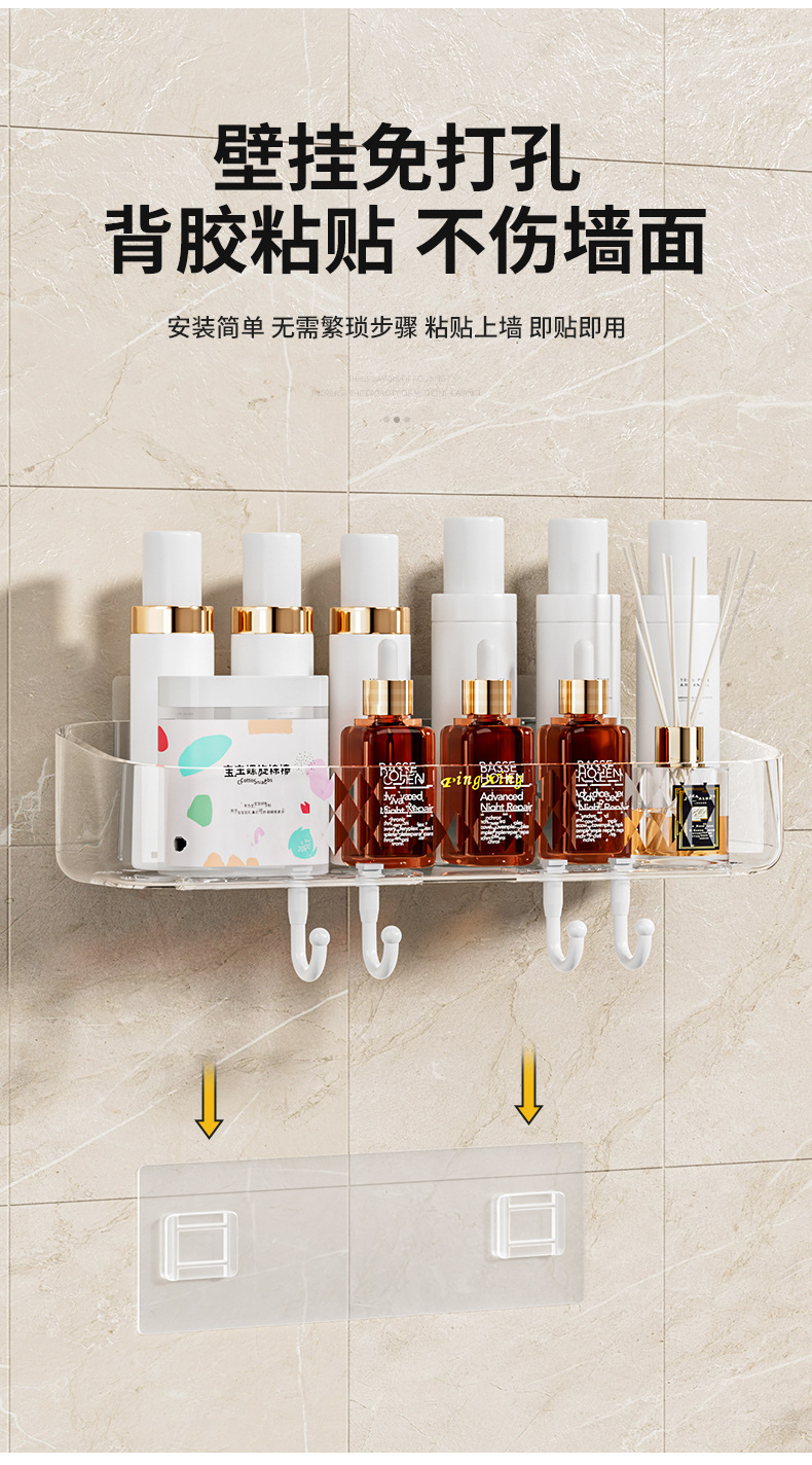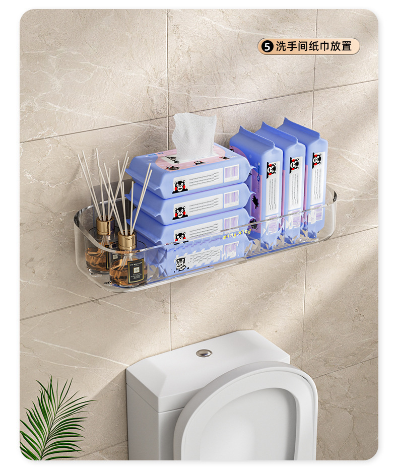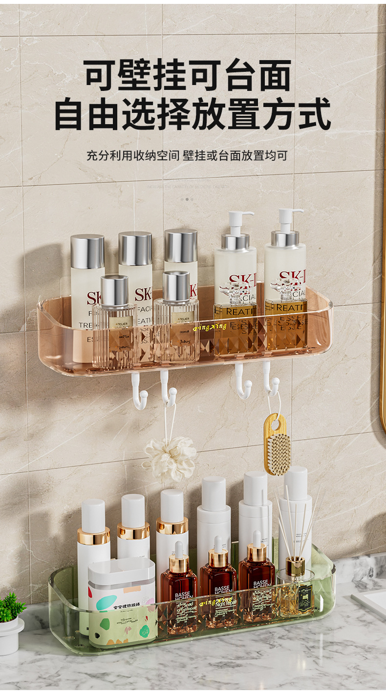 새로운 PET 가벼운 고급 투명 스토리지 랙 욕실 세척 화장품 주방 욕실 펀치 프리 벽 교수형 보관