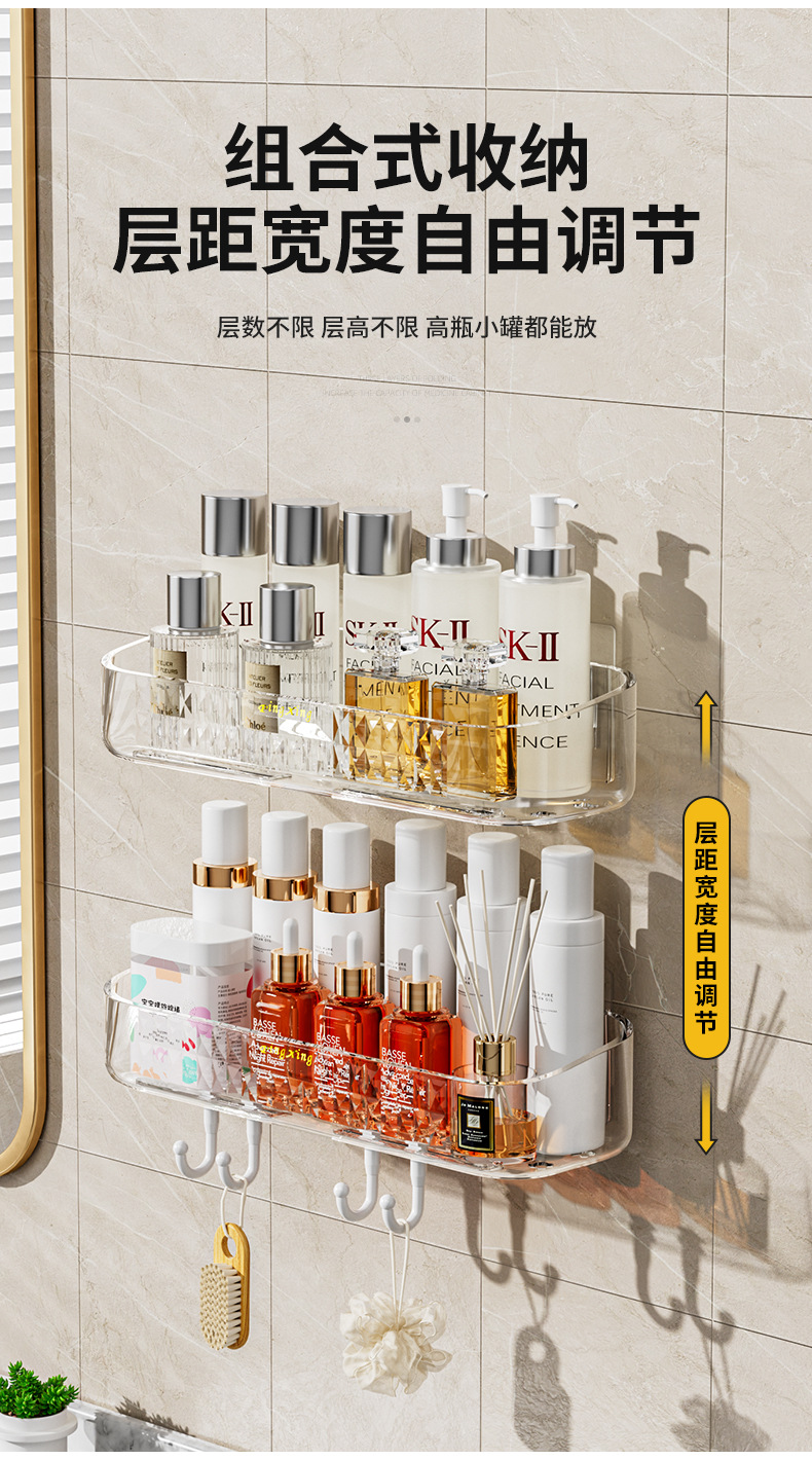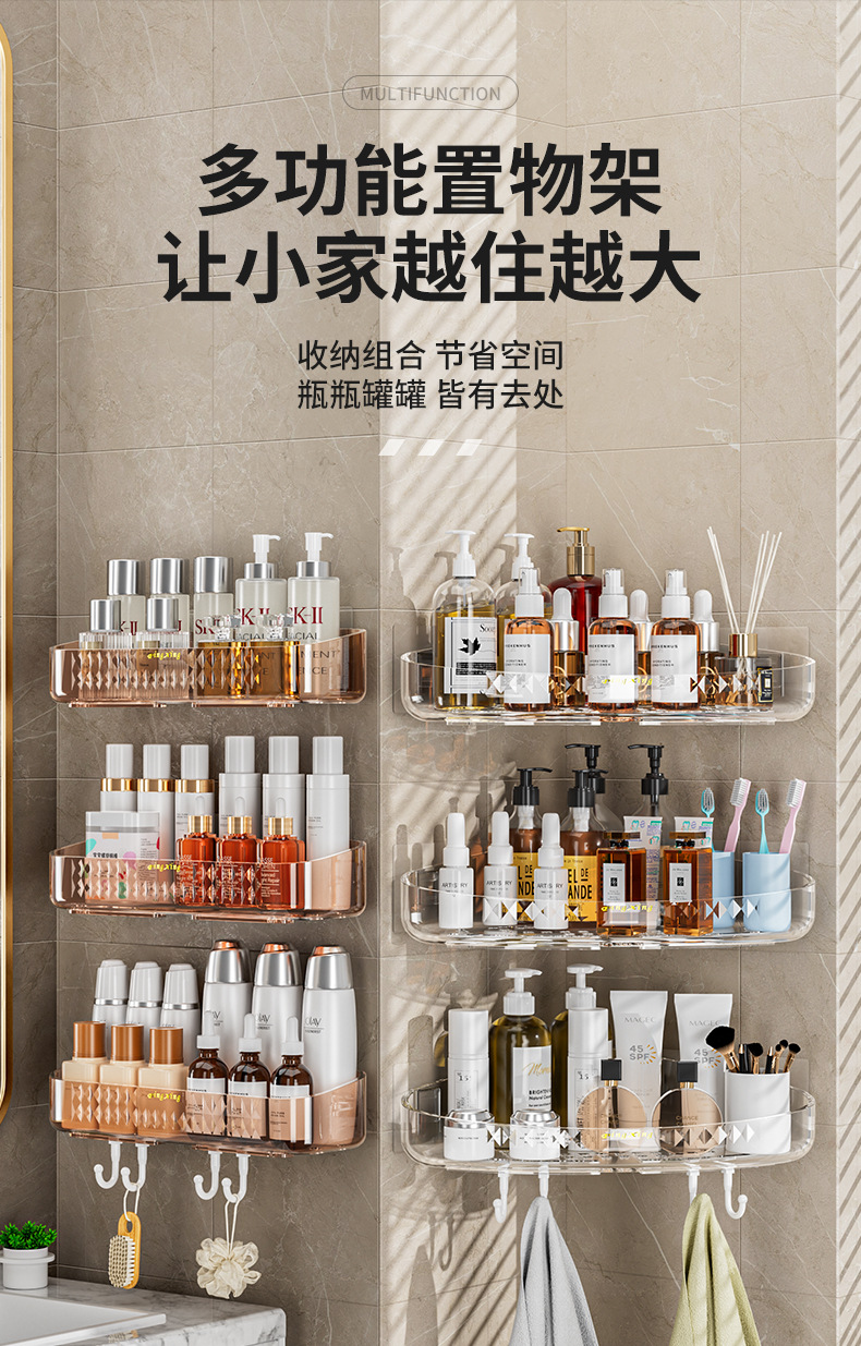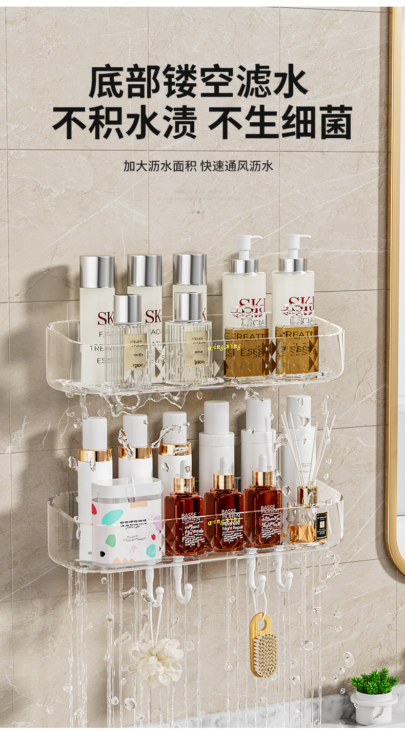 욕실 보관 랙 욕실 화장실 벽걸이 보관 펀치 프리 워시 라이트 럭셔리 투명 PET 기숙사 교수형 바구니