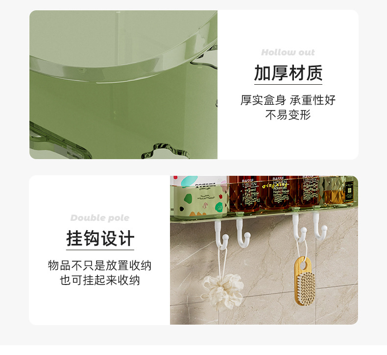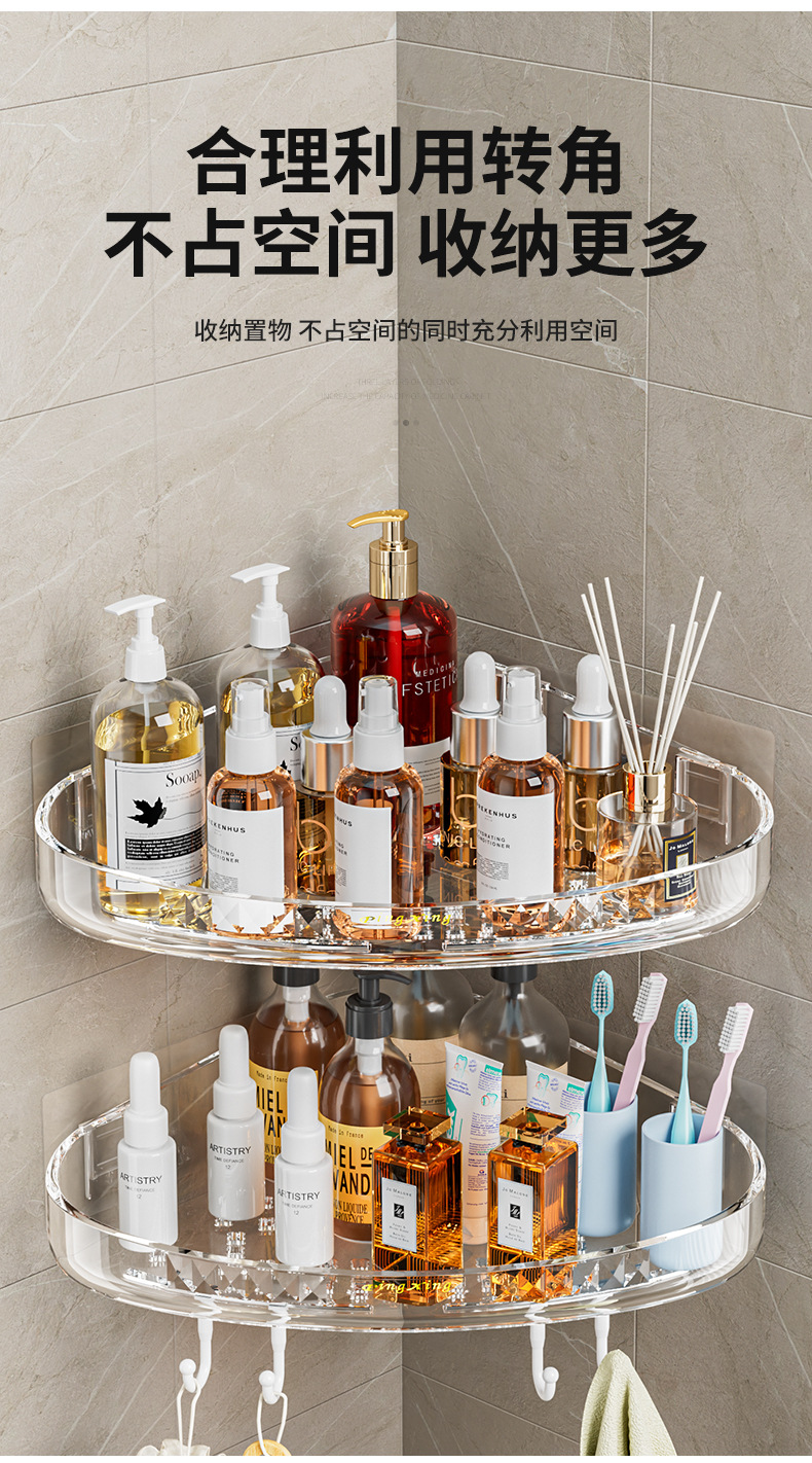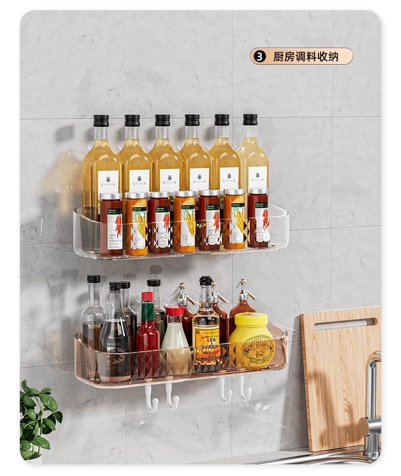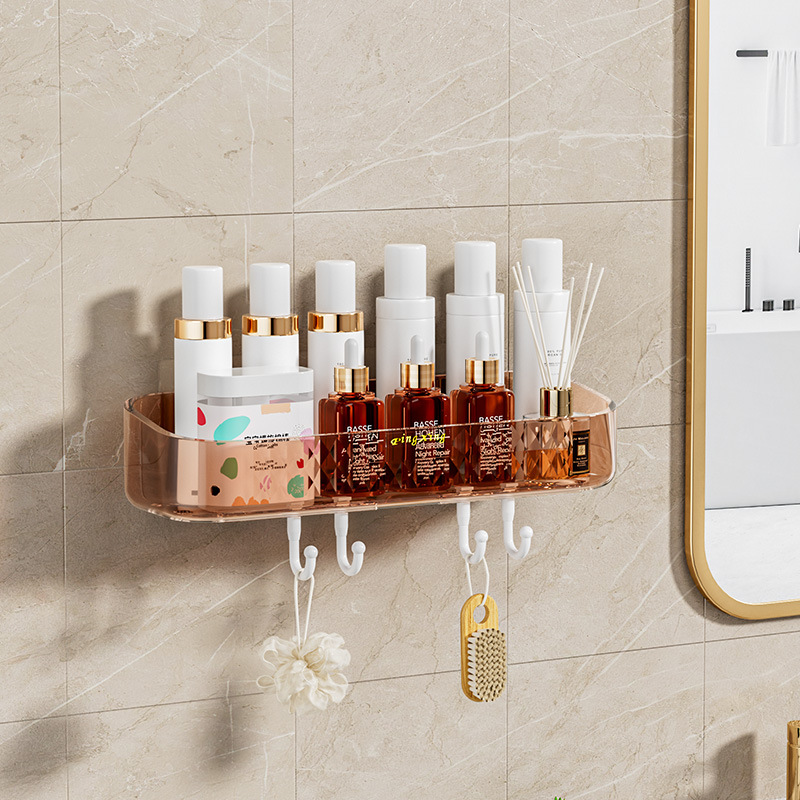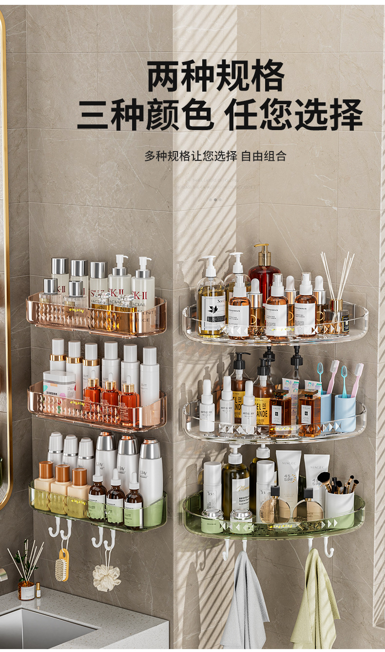 욕실 보관 랙 욕실 화장실 벽걸이 보관 펀치 프리 워시 라이트 럭셔리 투명 PET 기숙사 교수형 바구니