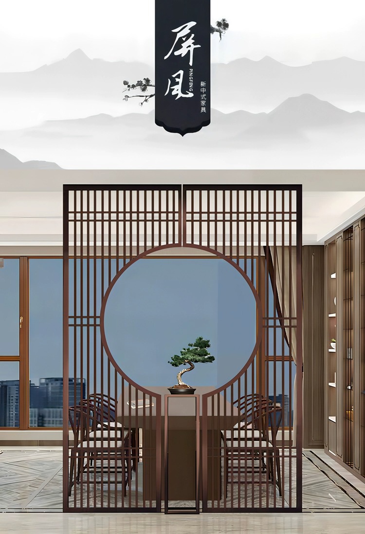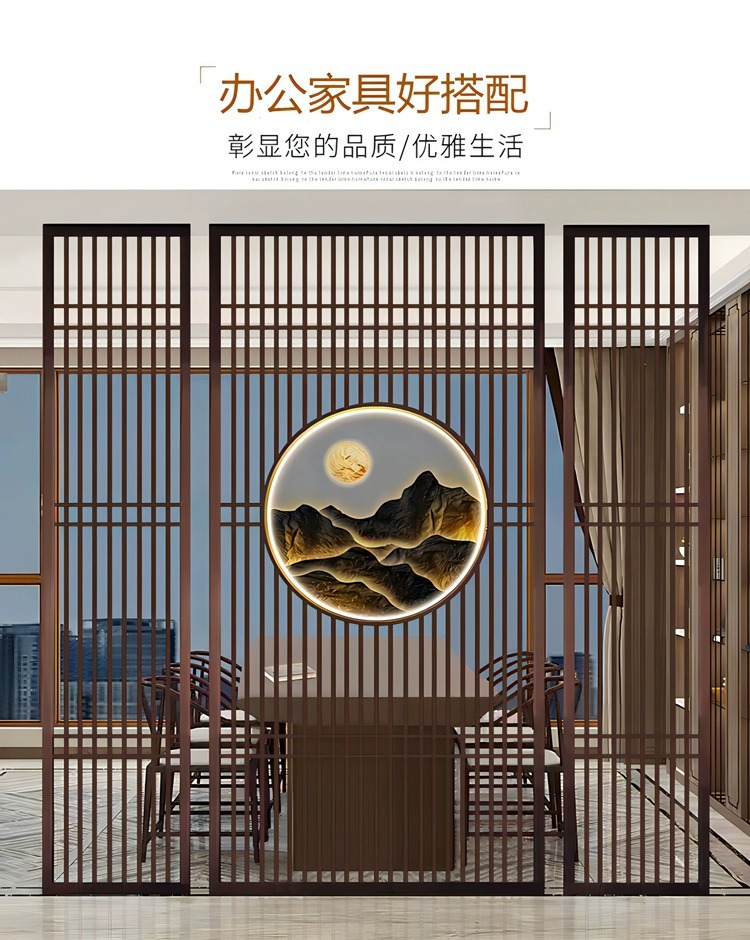 철 스크린 파티션 거실 사무실 새로운 중국 스타일 격자 무늬 차단 입구 그릴 배경 빈 장식