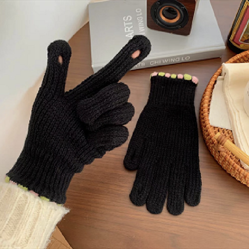 한국 작은 설탕 콩 겨울 손가락없는 울 니트 장갑 여성의 단색 따뜻한 방풍 손가락 터치 스크린 장갑