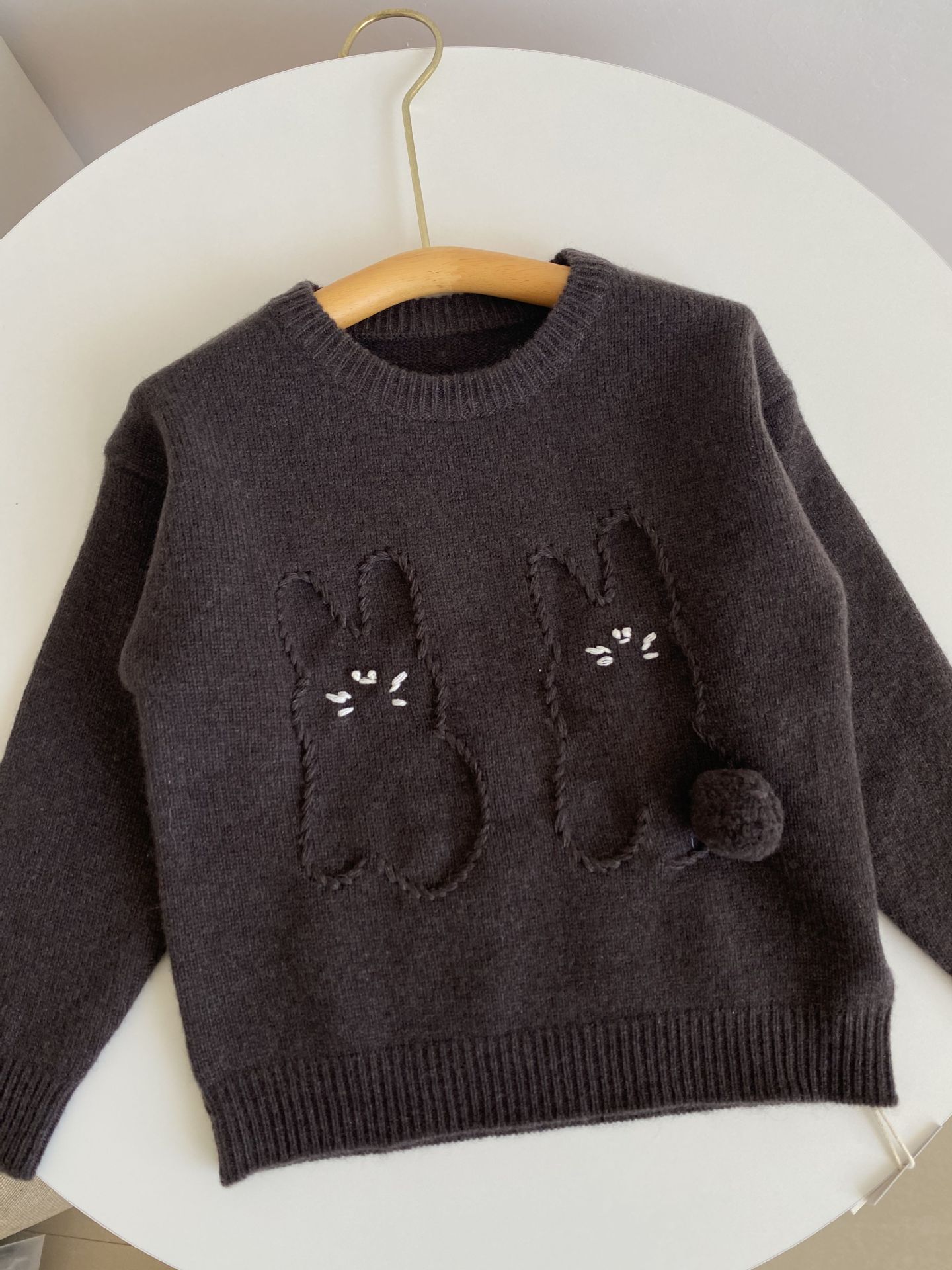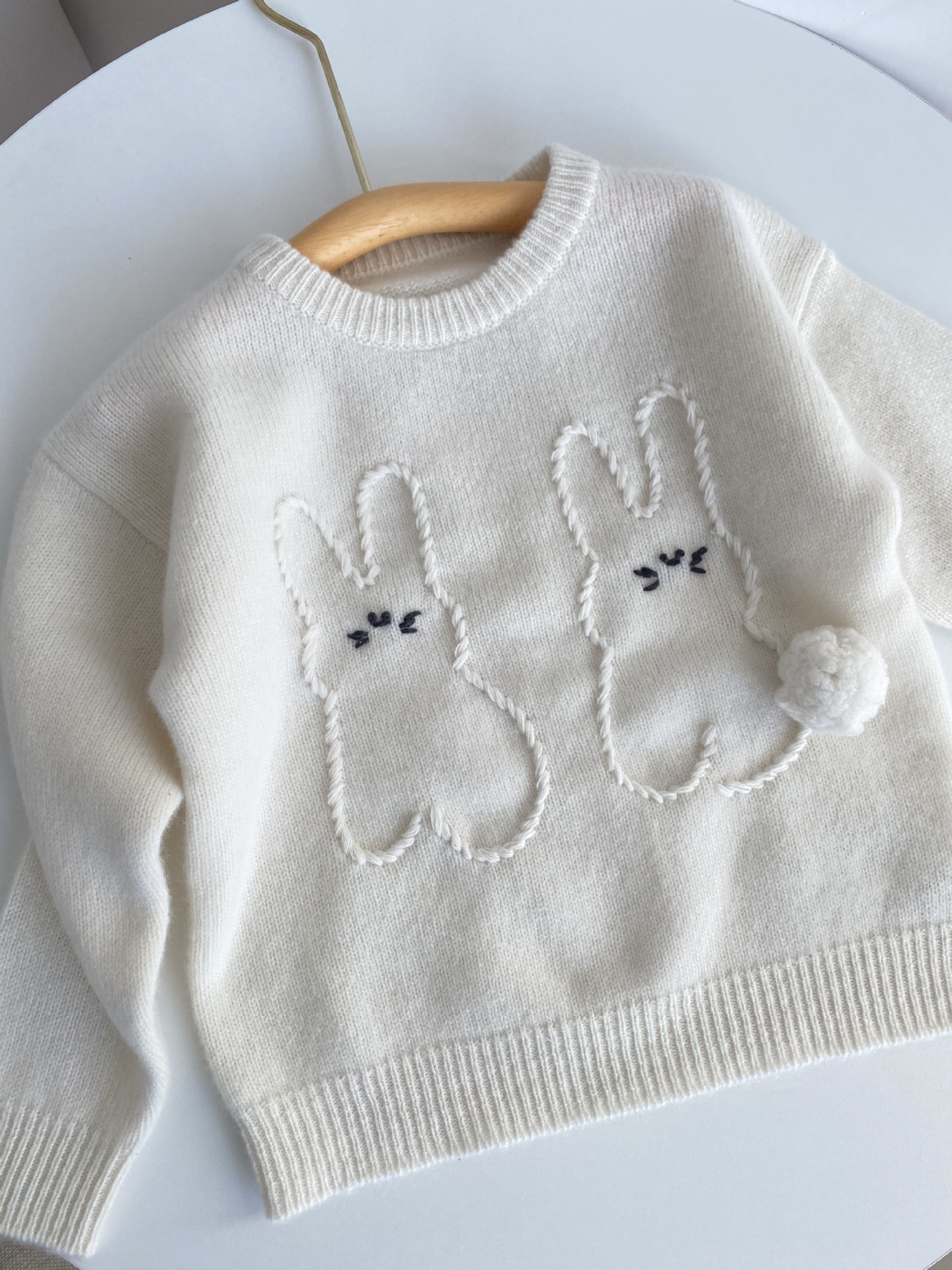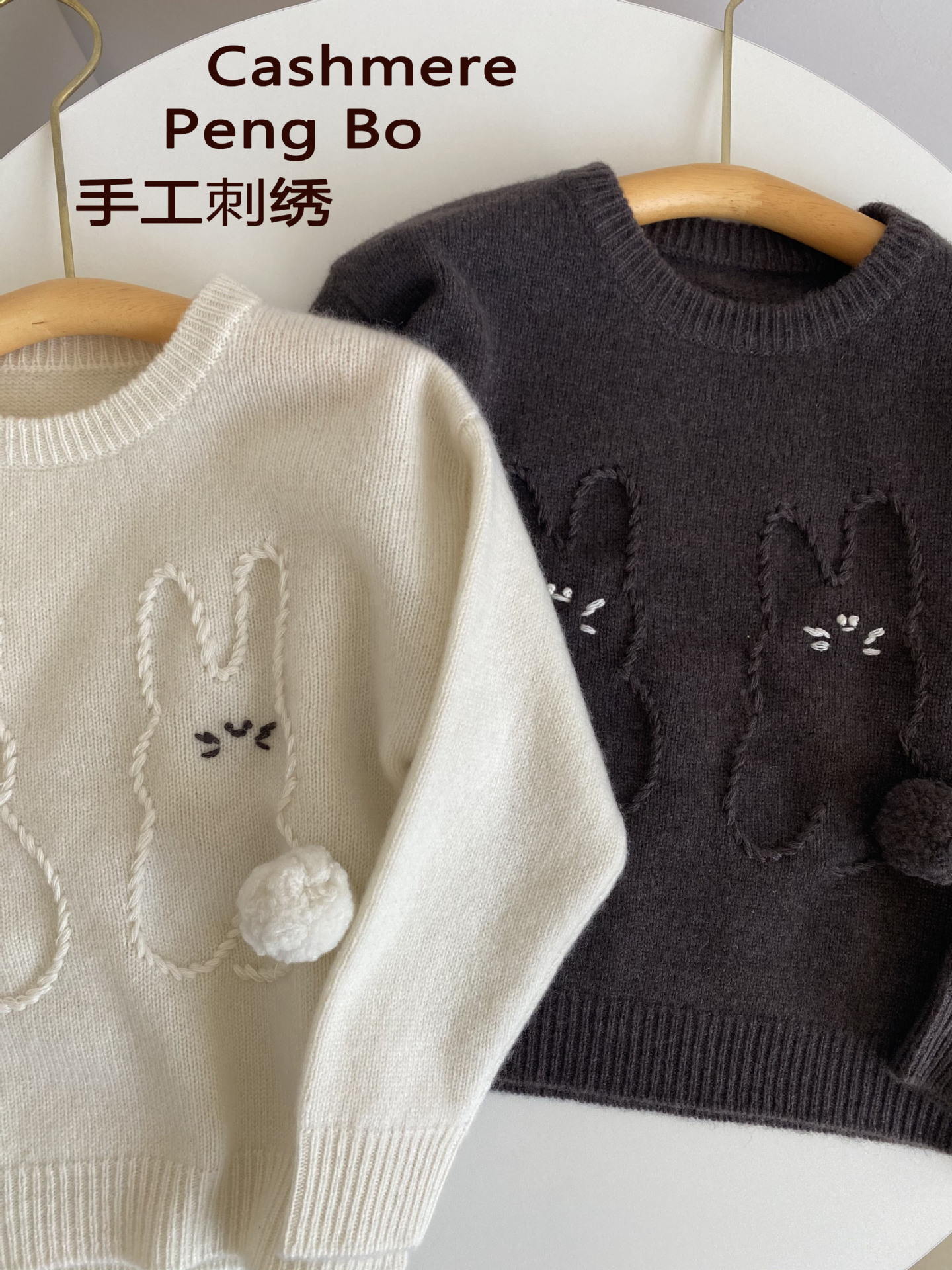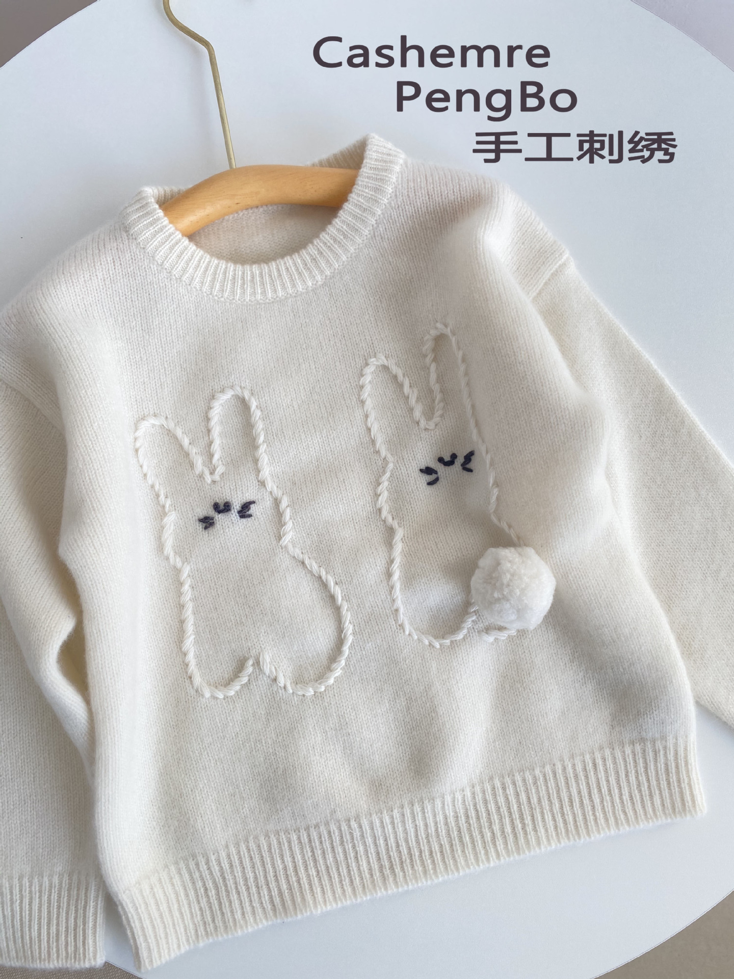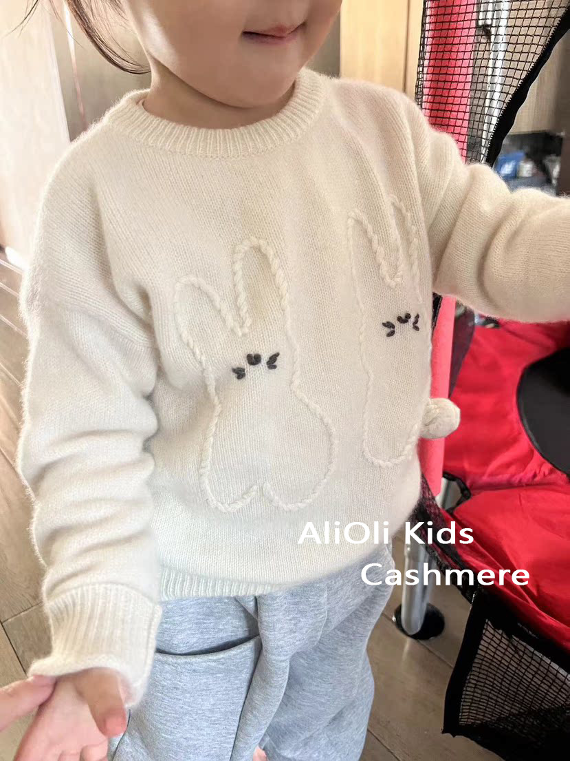 내몽골 Pengbo 캐시미어 풀오버 라운드 넥 어린이 캐시미어 스웨터 수제 만화 토끼 긴팔 스웨터스토어 가기