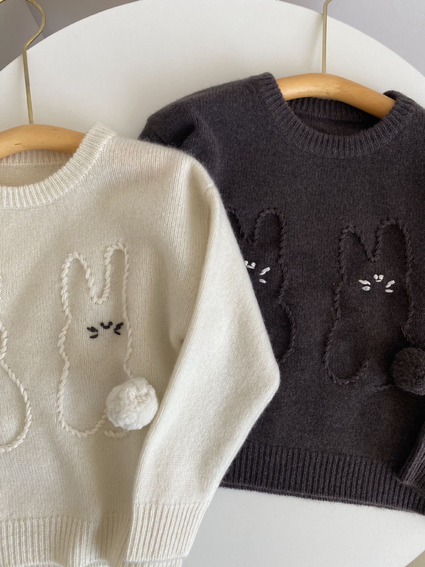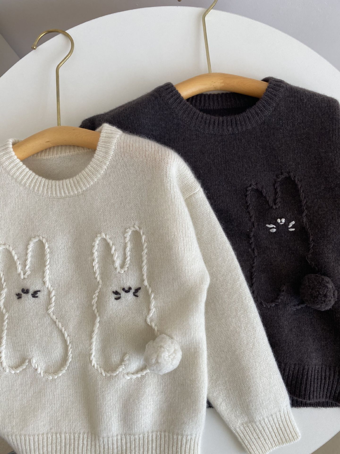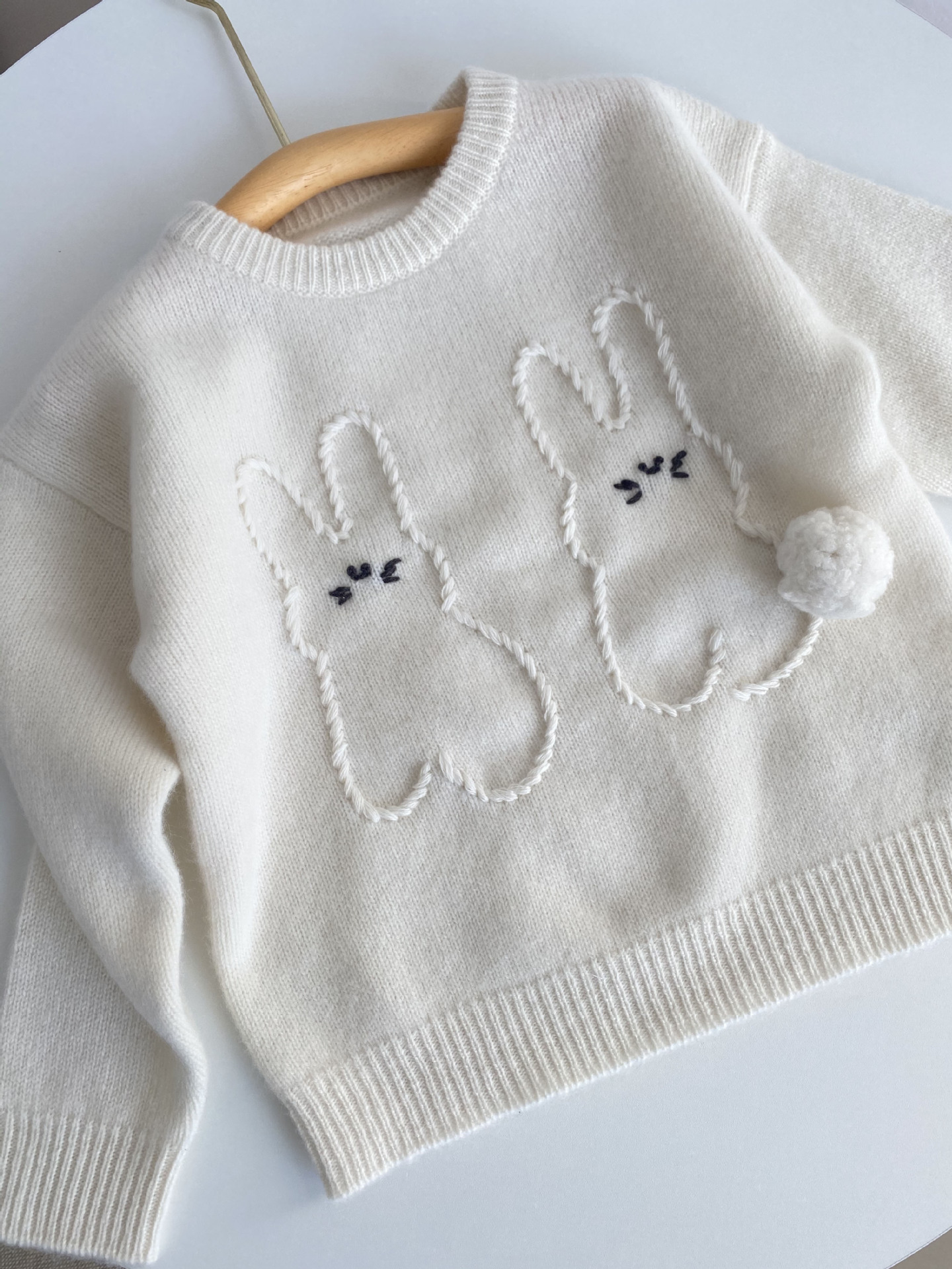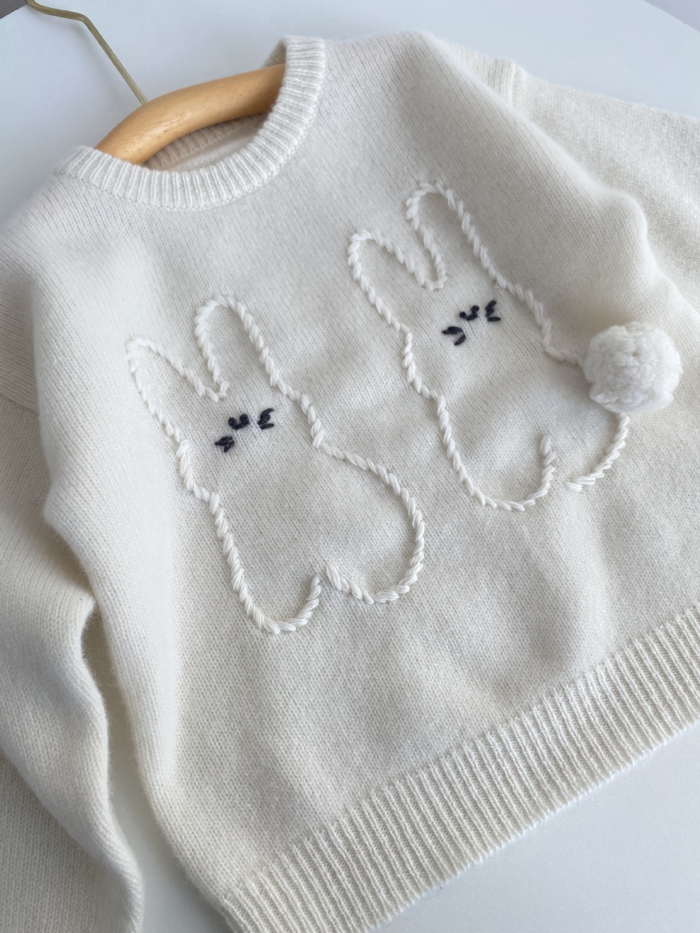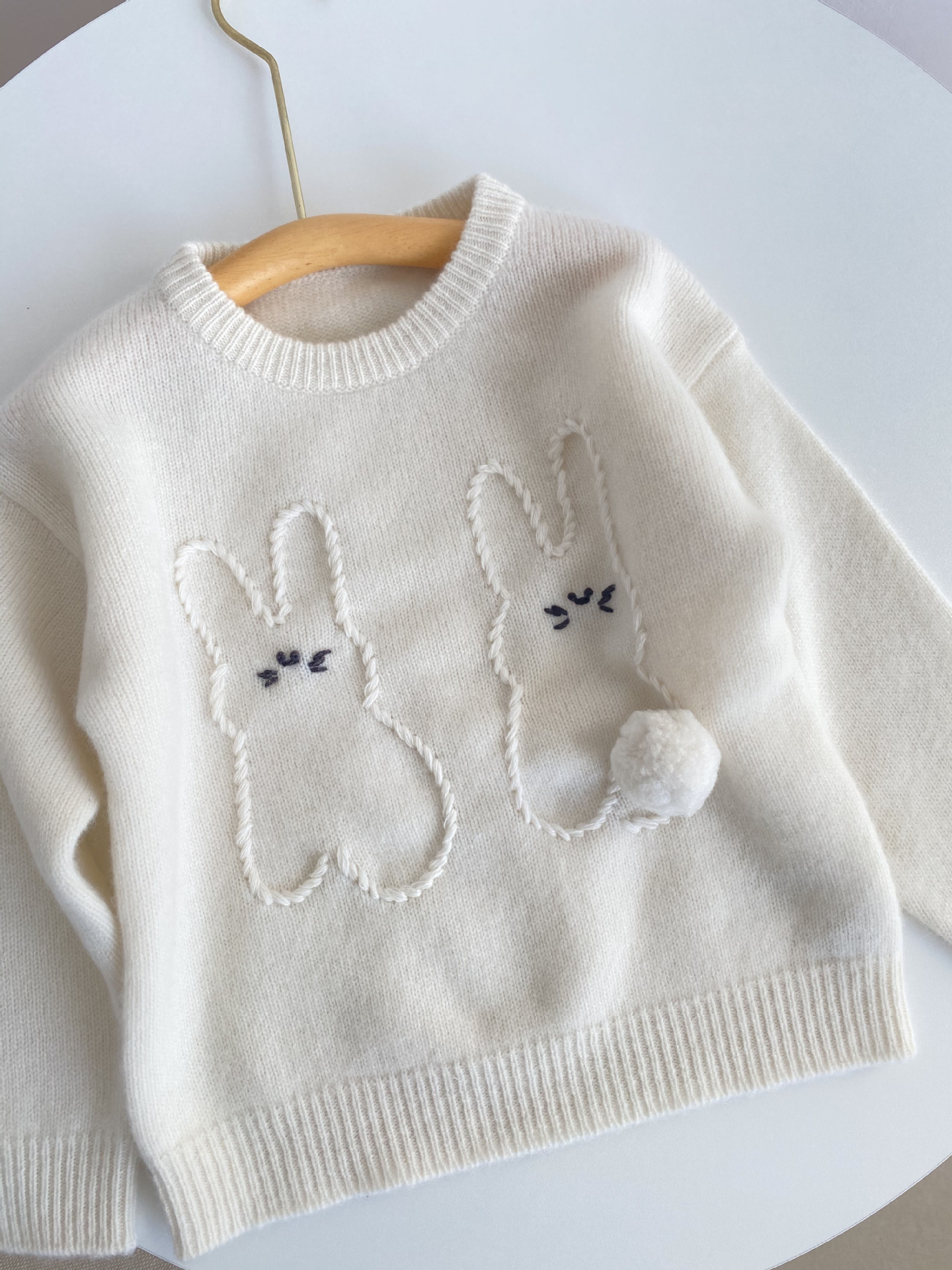 내몽골 Pengbo 캐시미어 풀오버 라운드 넥 어린이 캐시미어 스웨터 수제 만화 토끼 긴팔 스웨터스토어 가기
