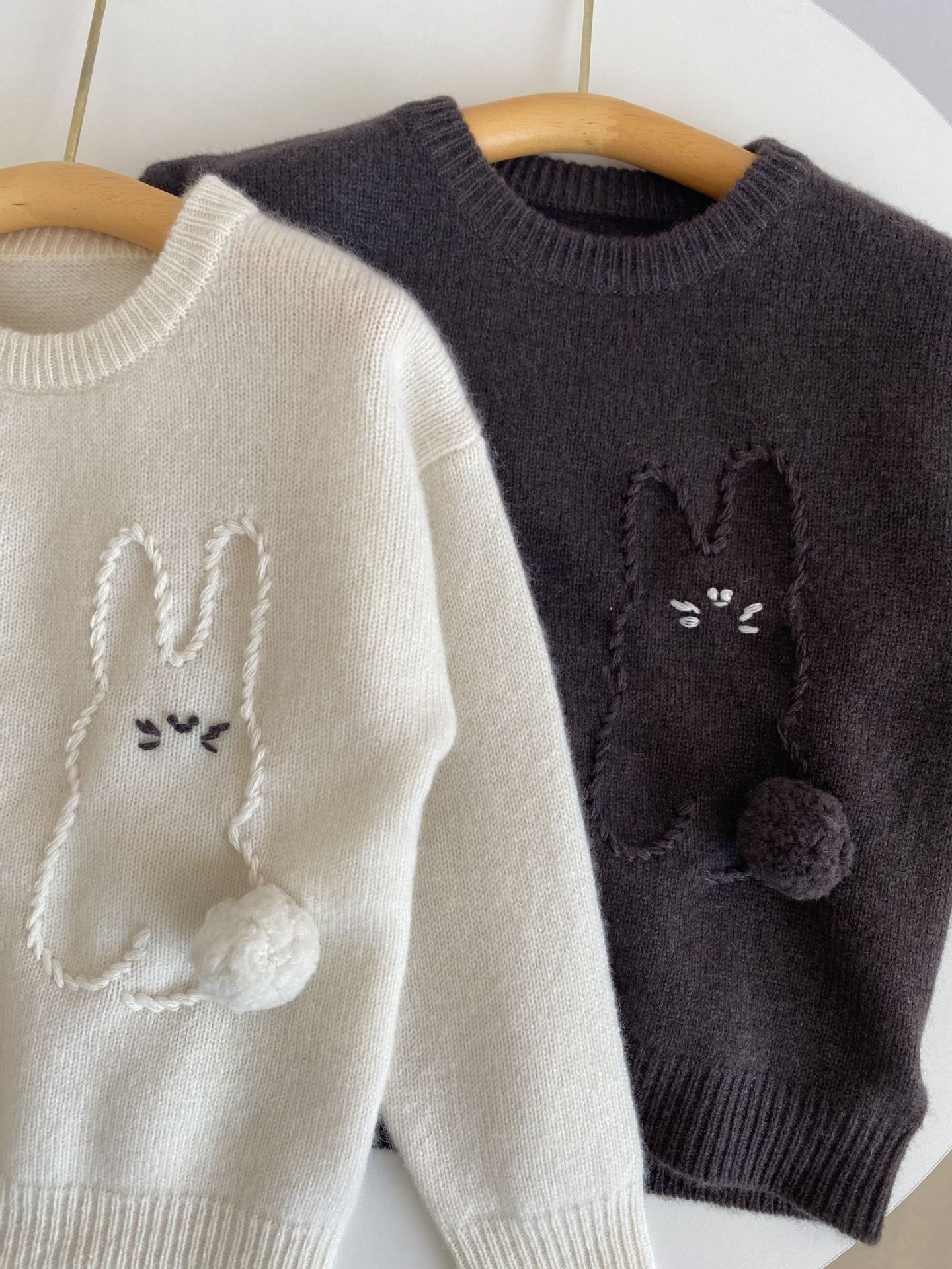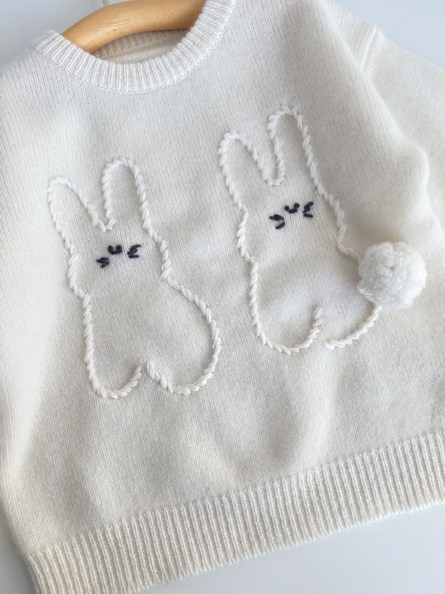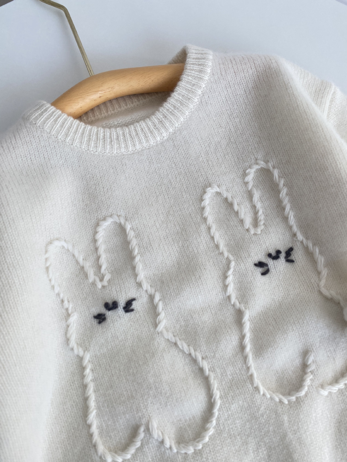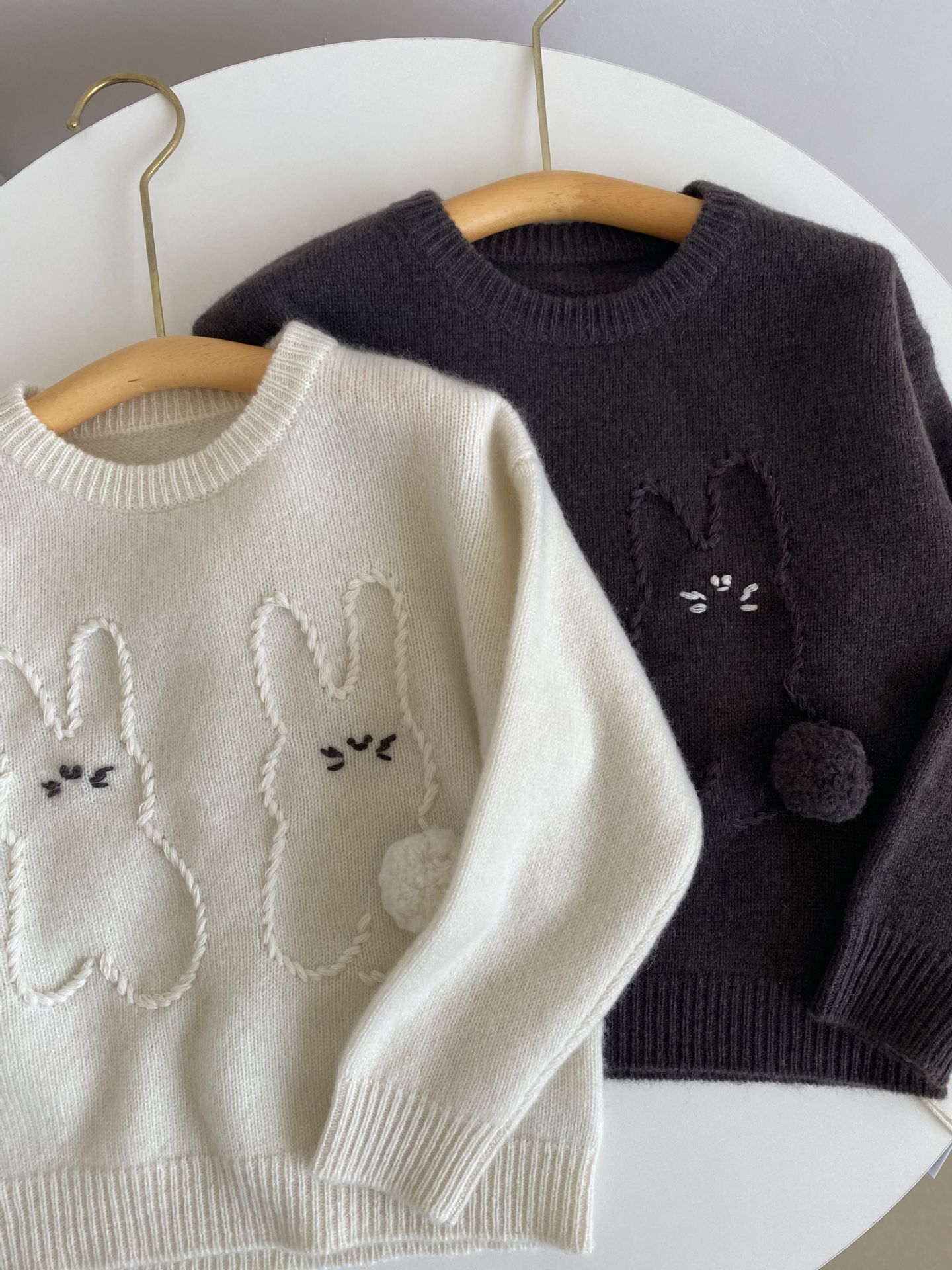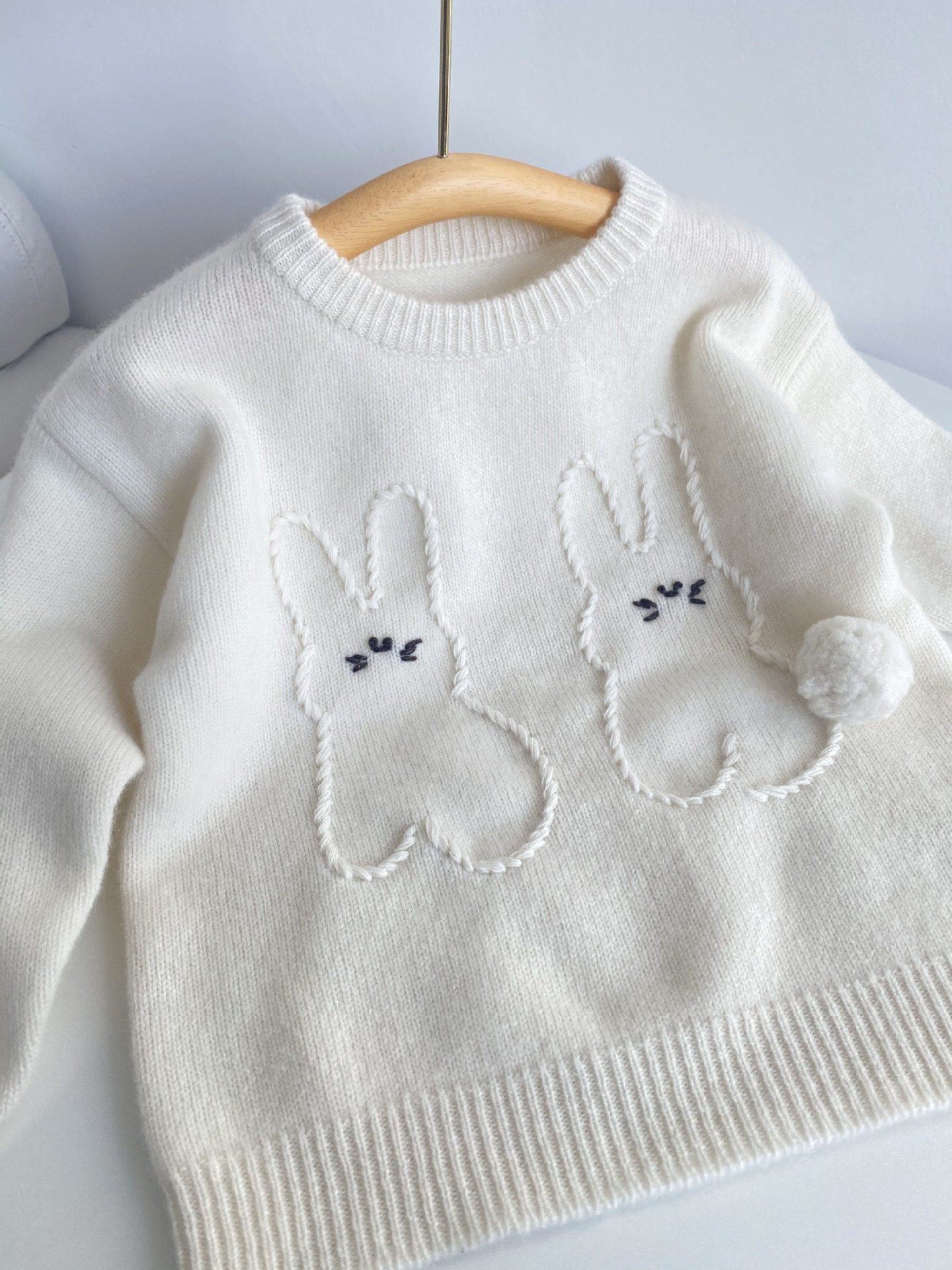 내몽골 Pengbo 캐시미어 풀오버 라운드 넥 어린이 캐시미어 스웨터 수제 만화 토끼 긴팔 스웨터스토어 가기