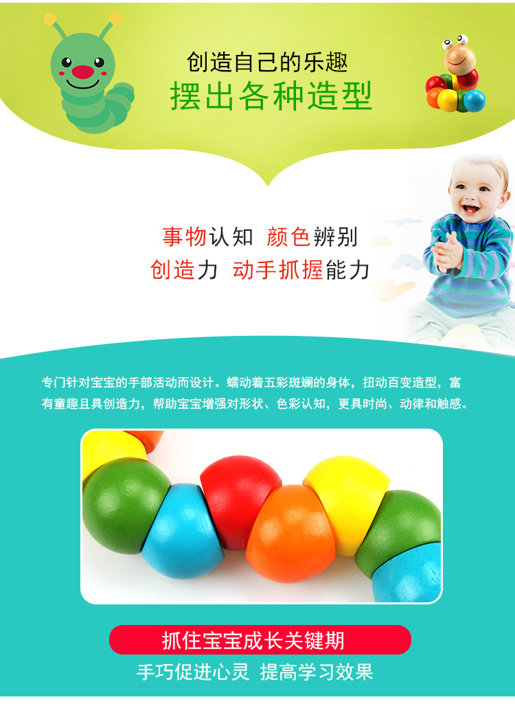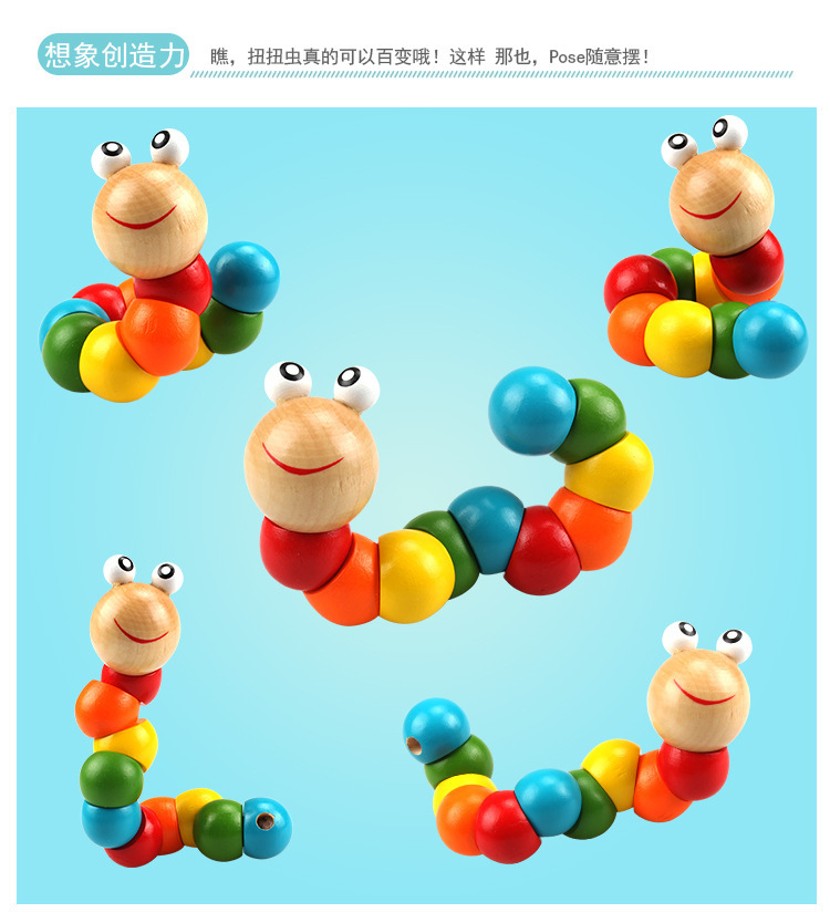 다채로운 변경 가능한 꼬인 애벌레 나무 빌딩 블록 교육 아기 장난감 무지개 운동 아기 손가락 유연한