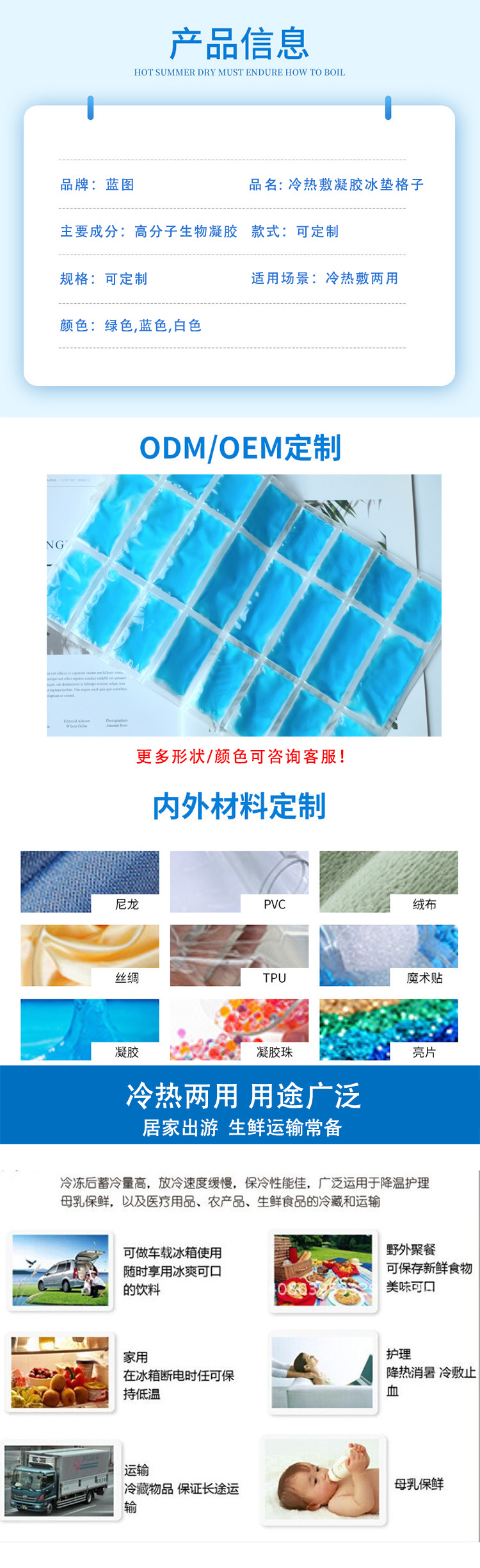 부직포 아이스 백 차갑고 뜨거운 압축 젤 격자 아이스 패드 물 주입이없는 아이스 패드 신선한 콜드 체인 운송 반복 사용