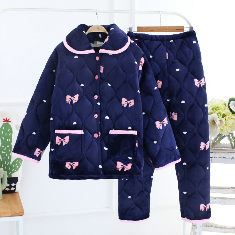 가을과 겨울 퀼트 엄마 잠옷 여성 기모 두껍게 된 중년 및 노인 플란넬 플러스 사이즈 홈웨어 세트