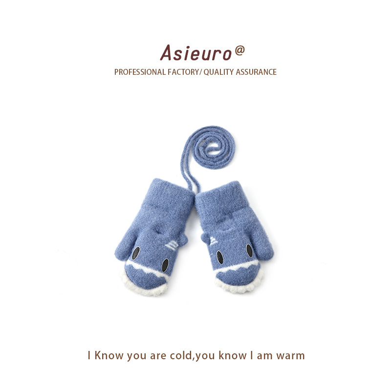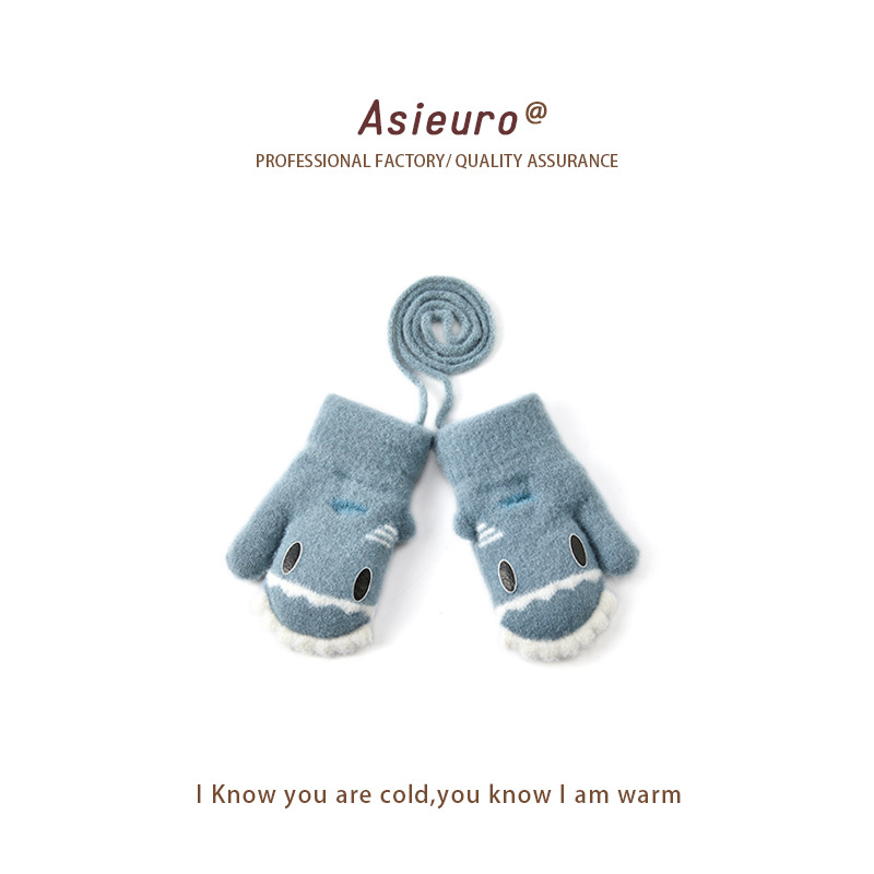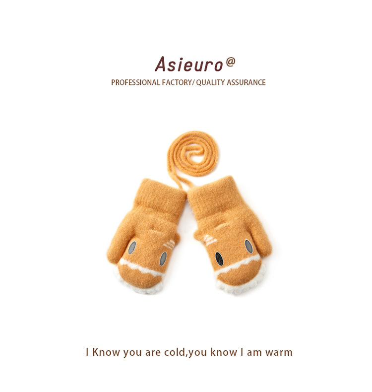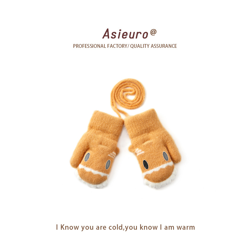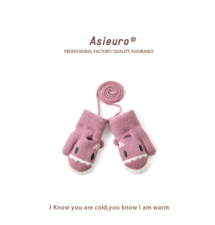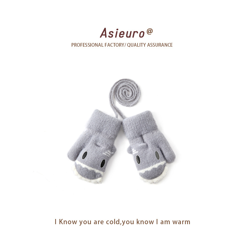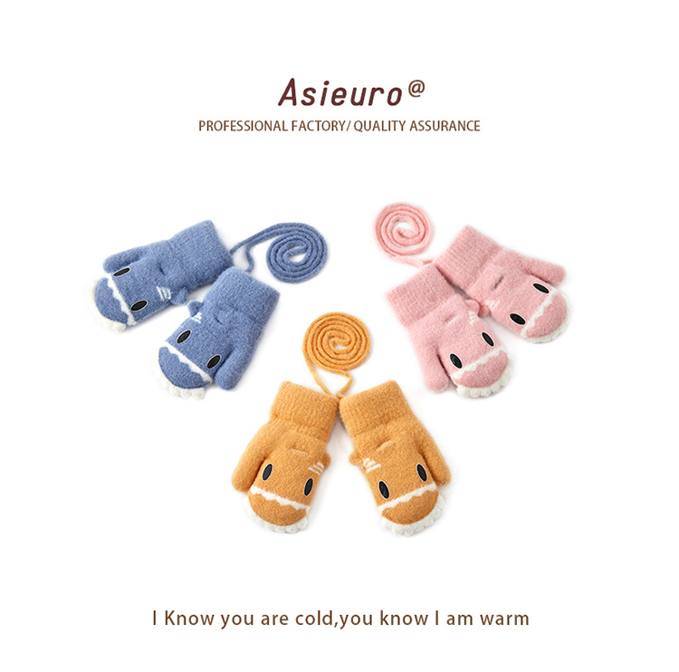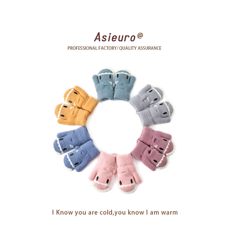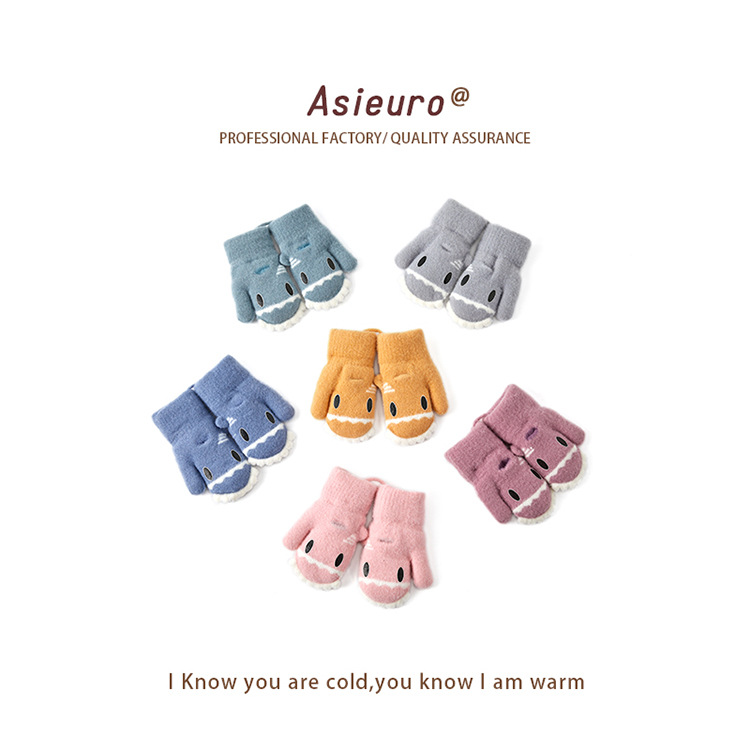새로운 가을과 겨울 소년과 소녀 유치원 아기 따뜻한 니트 장갑 기모 두꺼운 만화 귀여운 손가락 도매