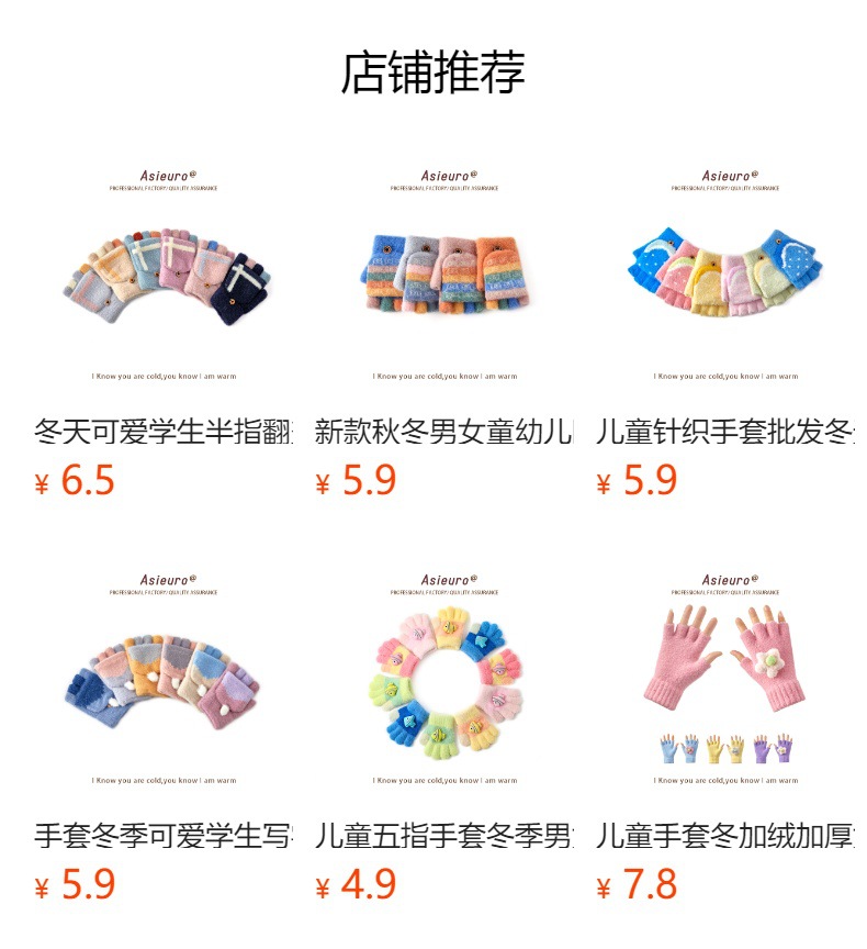 새로운 가을과 겨울 소년과 소녀 유치원 아기 따뜻한 니트 장갑 기모 두꺼운 만화 귀여운 손가락 도매스토어 가기
