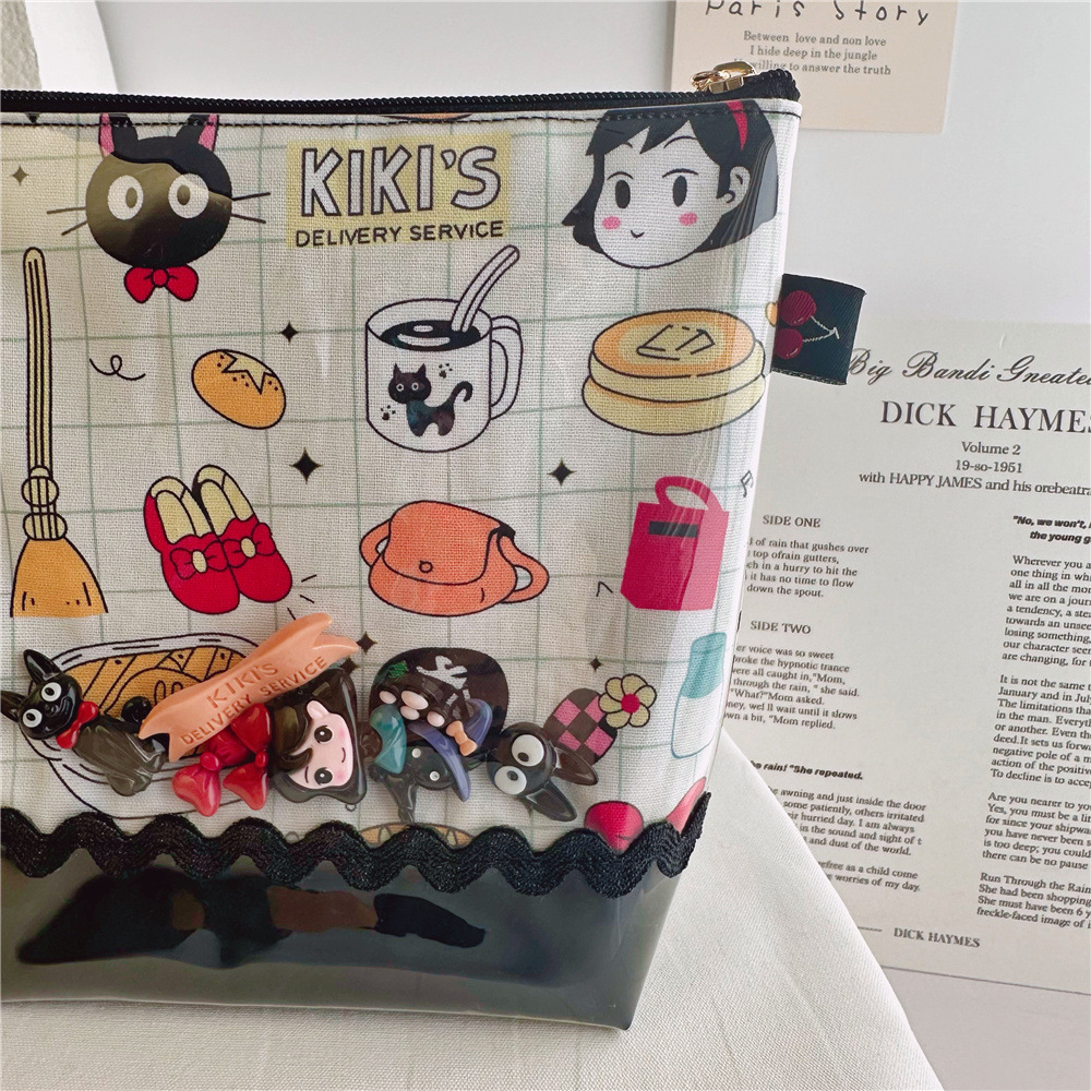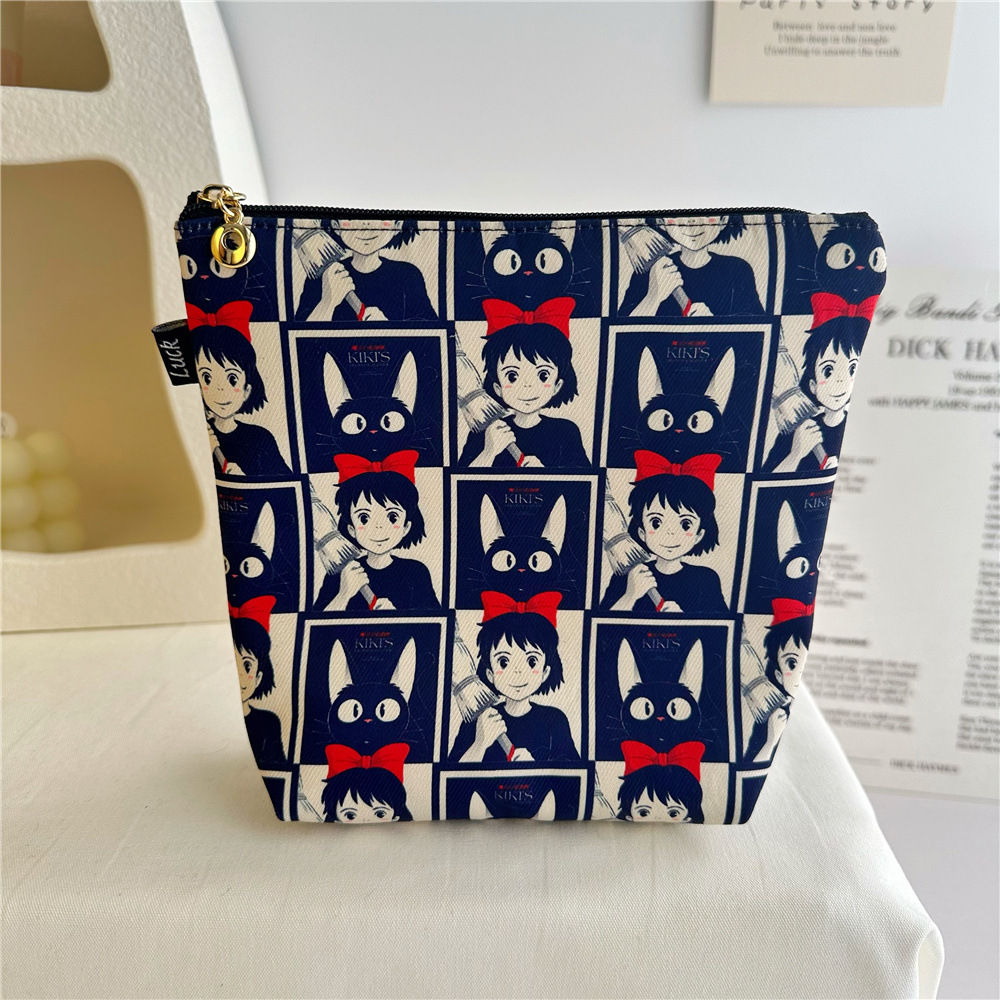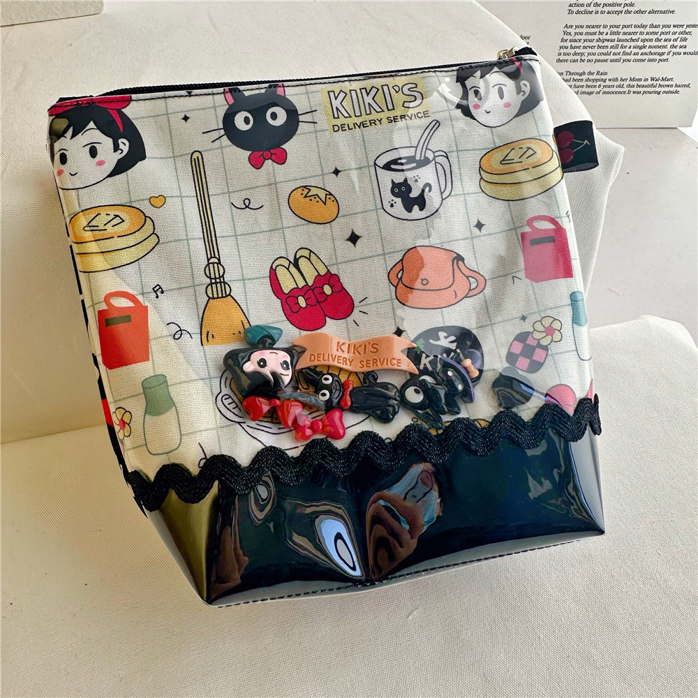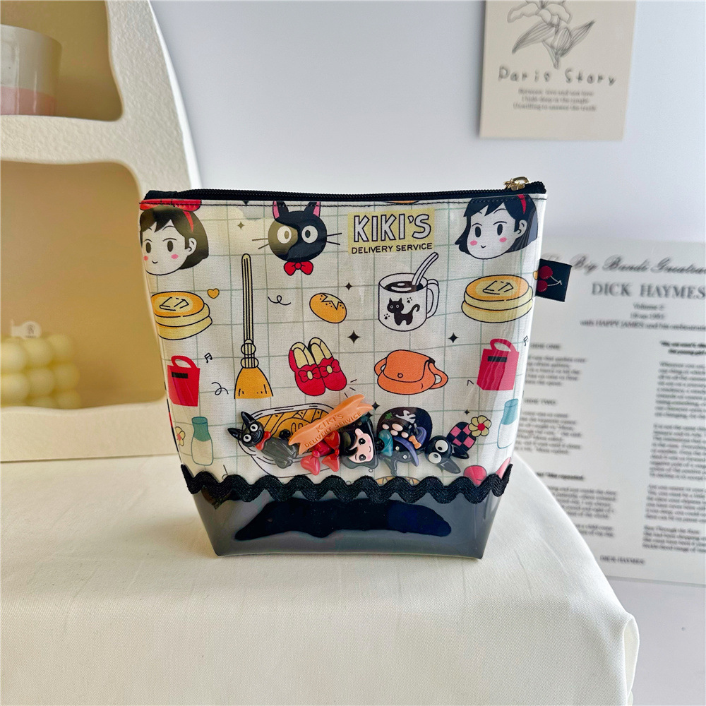 귀여운 고양이 소녀 인쇄 직물 투명 TPU 퀵 샌드 화장품 보관 가방 립스틱 가방 화장품 가방