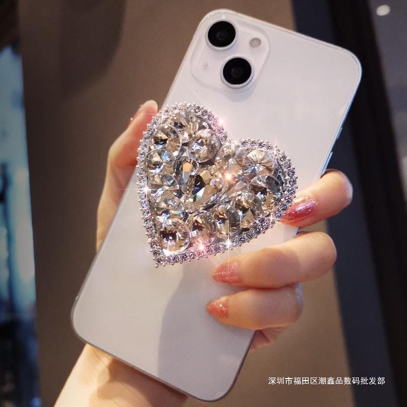 휴대 전화 홀더 럭셔리 보석 다이아몬드 사랑 텔레스코픽 접이식 버클 인터넷 연예인 여성 휴대용 휴대 전화 케이스 유니버설 백 스티커스토어 가기