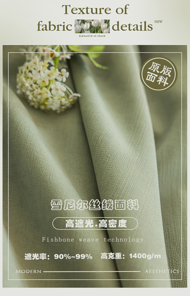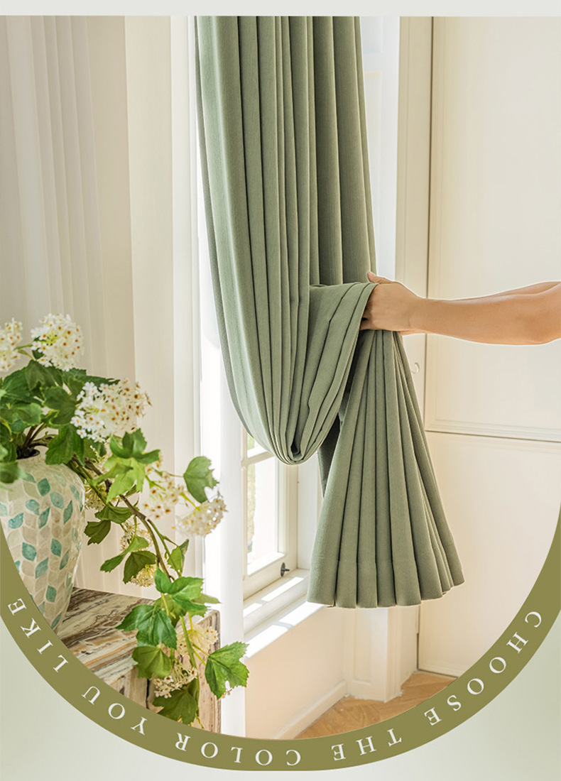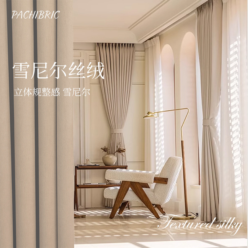크림 벨벳 현대 간단한 체닐 풀 블랙 아웃 커튼 침실 거실 베이 창 커튼 원단 완제품 배달