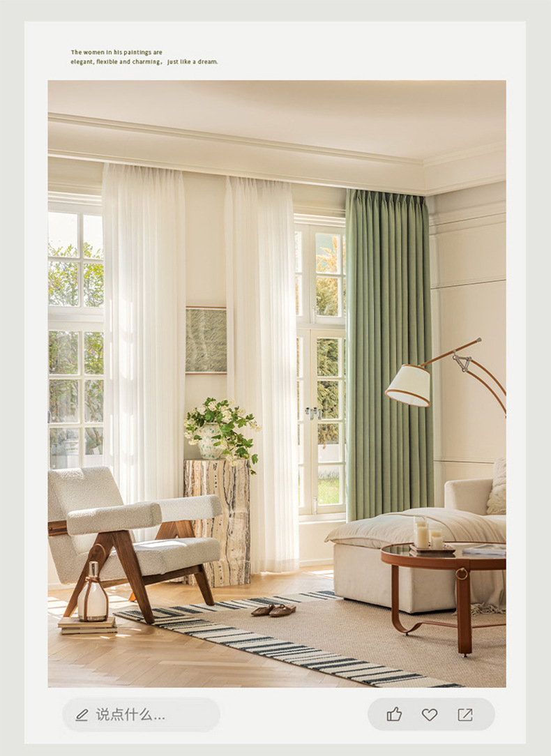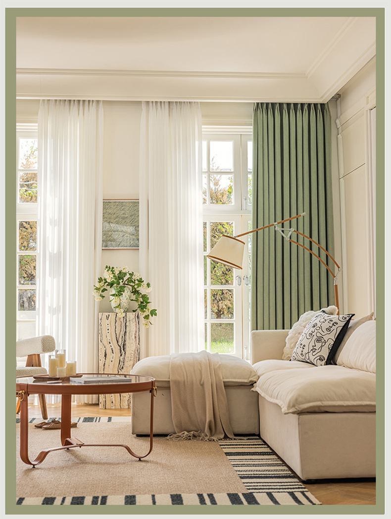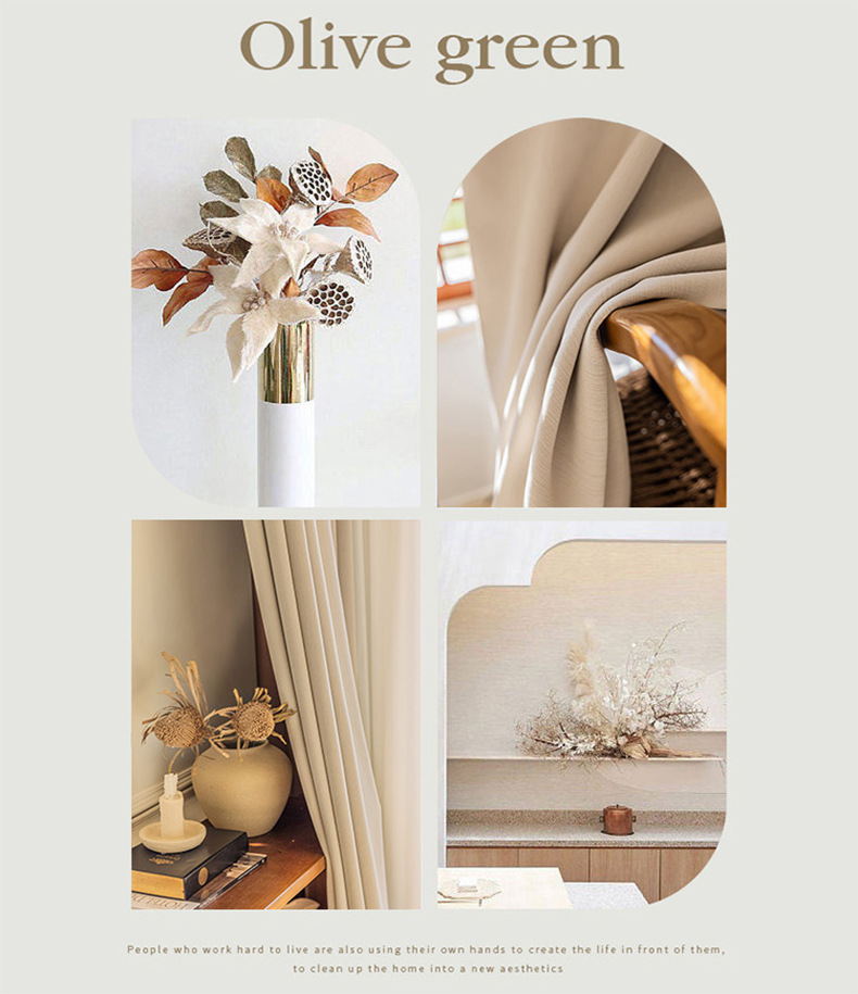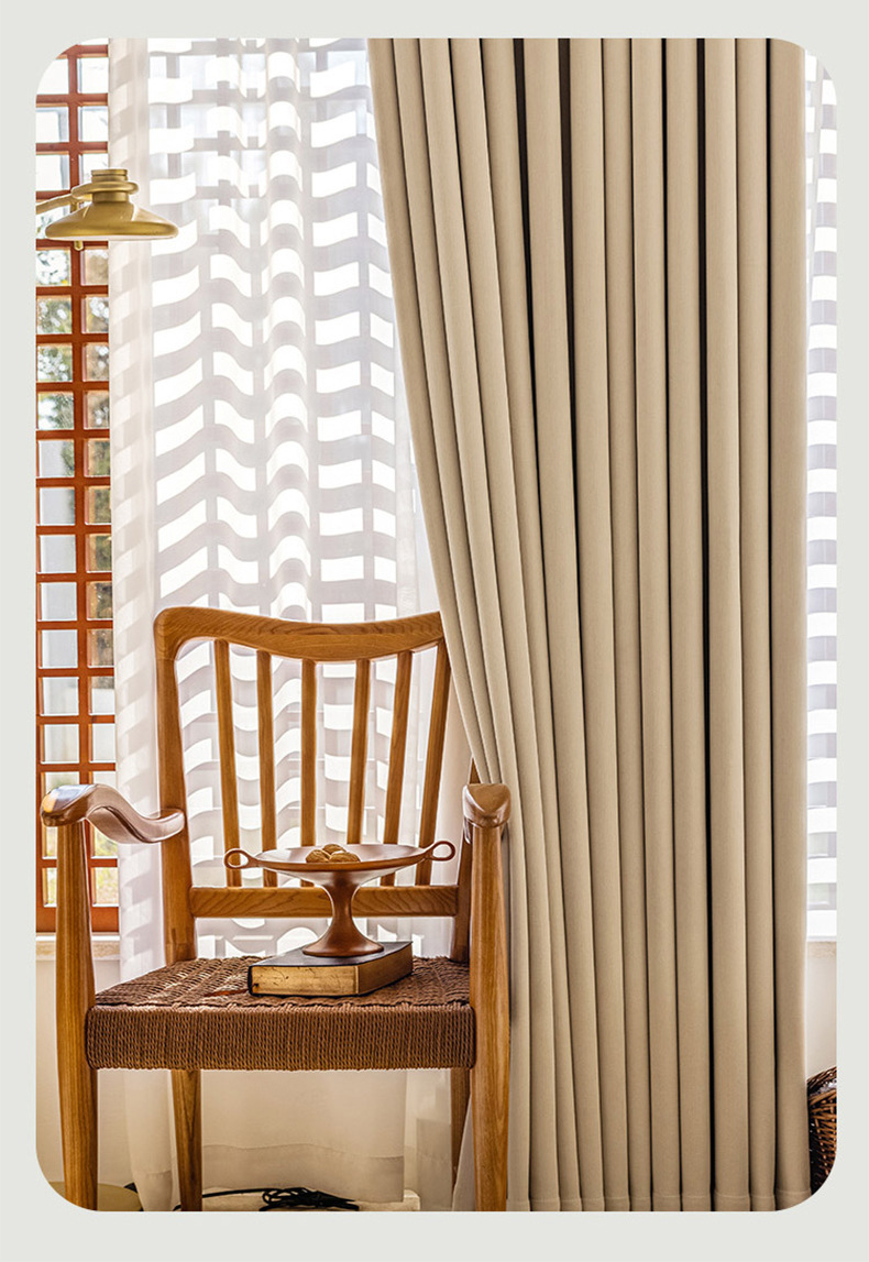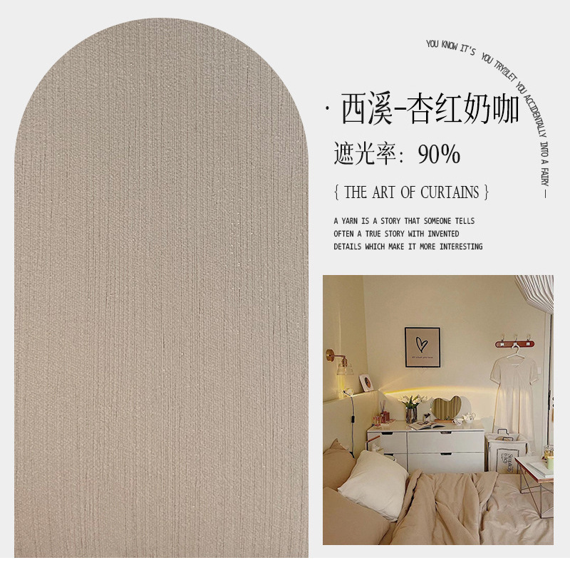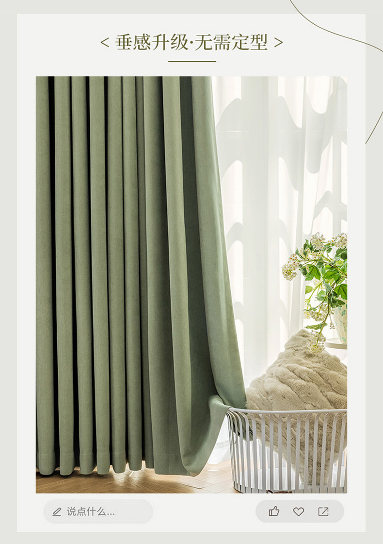 크림 벨벳 현대 간단한 체닐 풀 블랙 아웃 커튼 침실 거실 베이 창 커튼 원단 완제품 배달스토어 가기