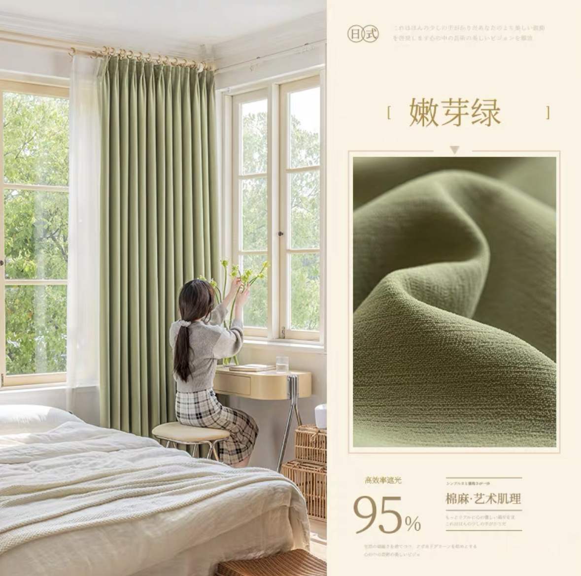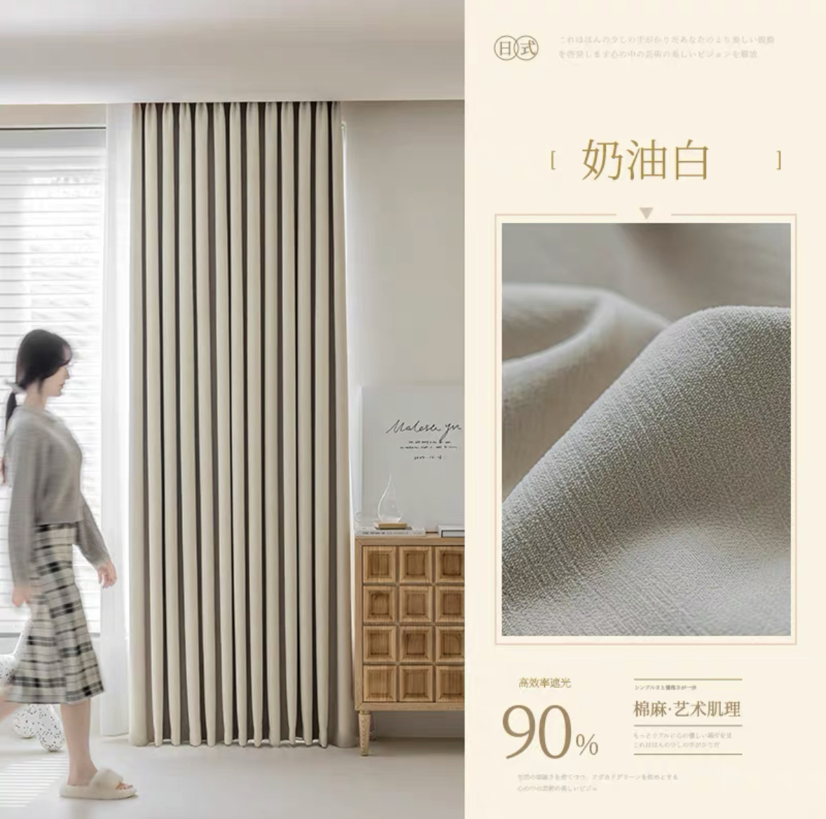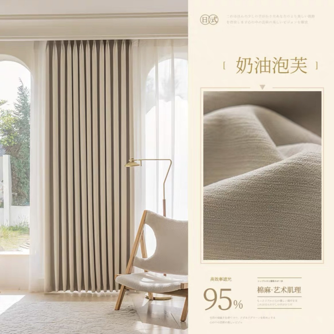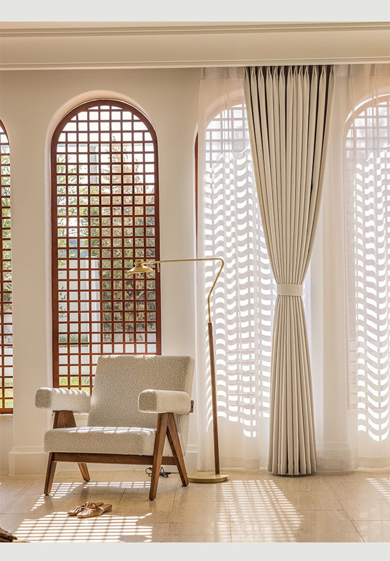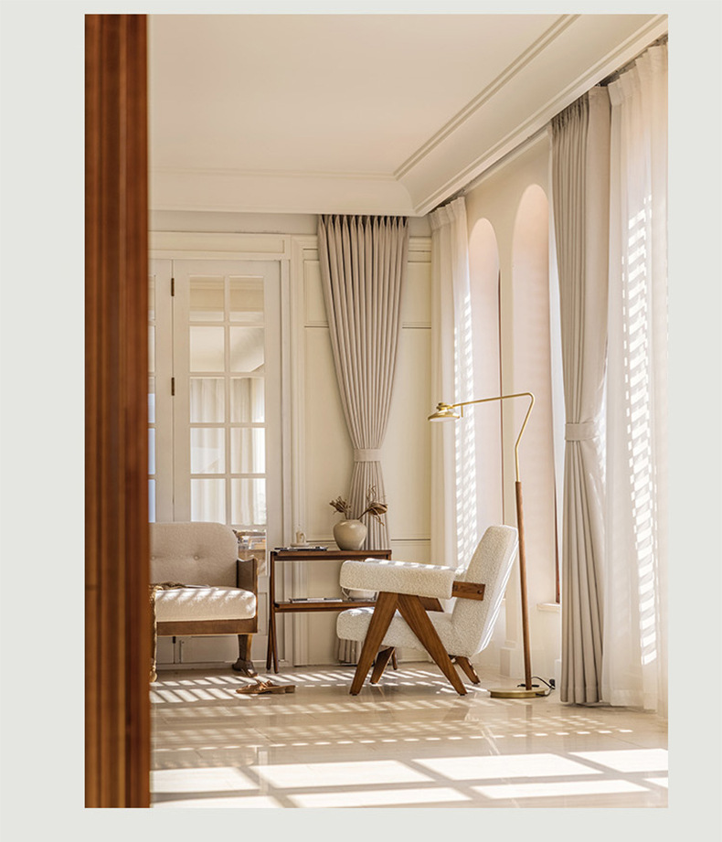크림 벨벳 현대 간단한 체닐 풀 블랙 아웃 커튼 침실 거실 베이 창 커튼 원단 완제품 배달스토어 가기