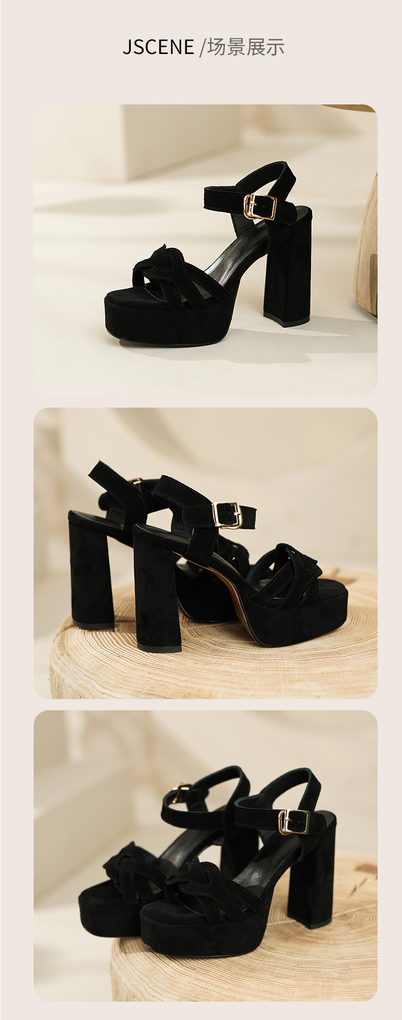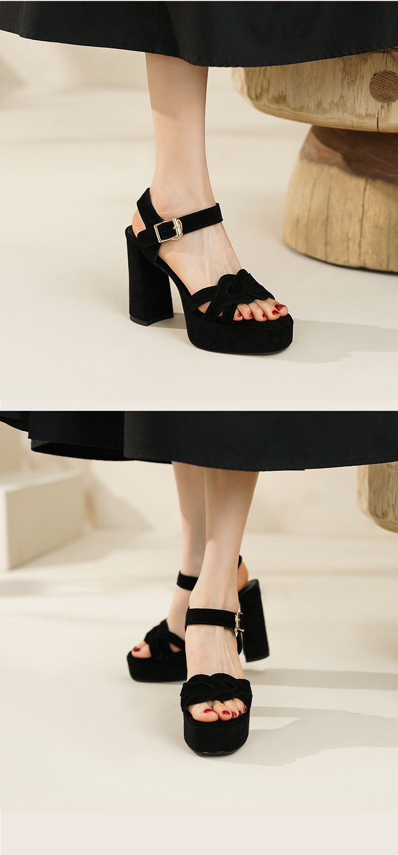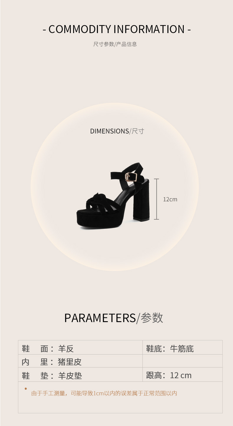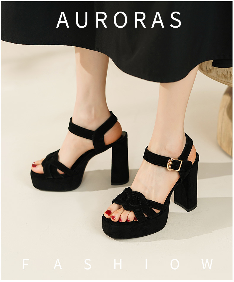 양가죽 오픈 발가락 청키 힐 샌들 여성 유럽과 미국 스타일의 로마 하이힐 여름 새로운 패션 여성 신발스토어 가기