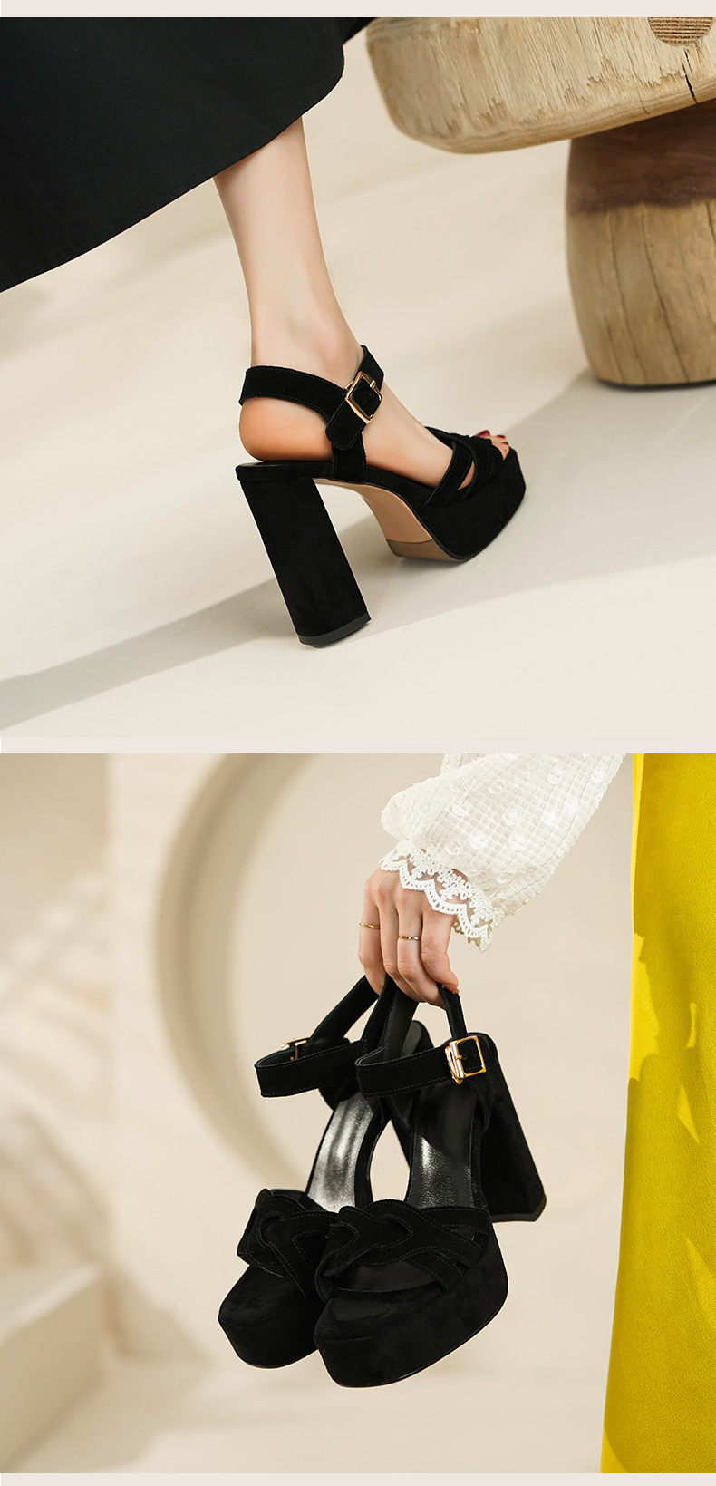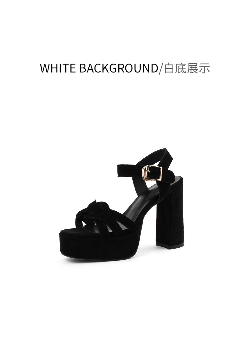 양가죽 오픈 발가락 청키 힐 샌들 여성 유럽과 미국 스타일의 로마 하이힐 여름 새로운 패션 여성 신발