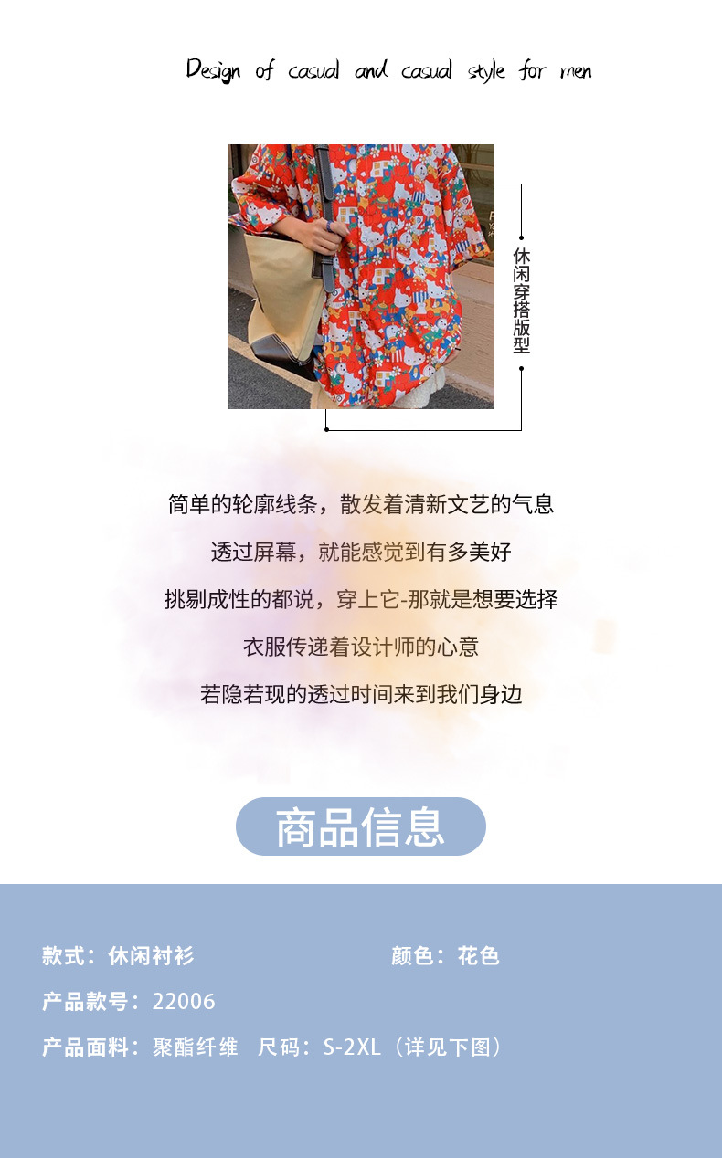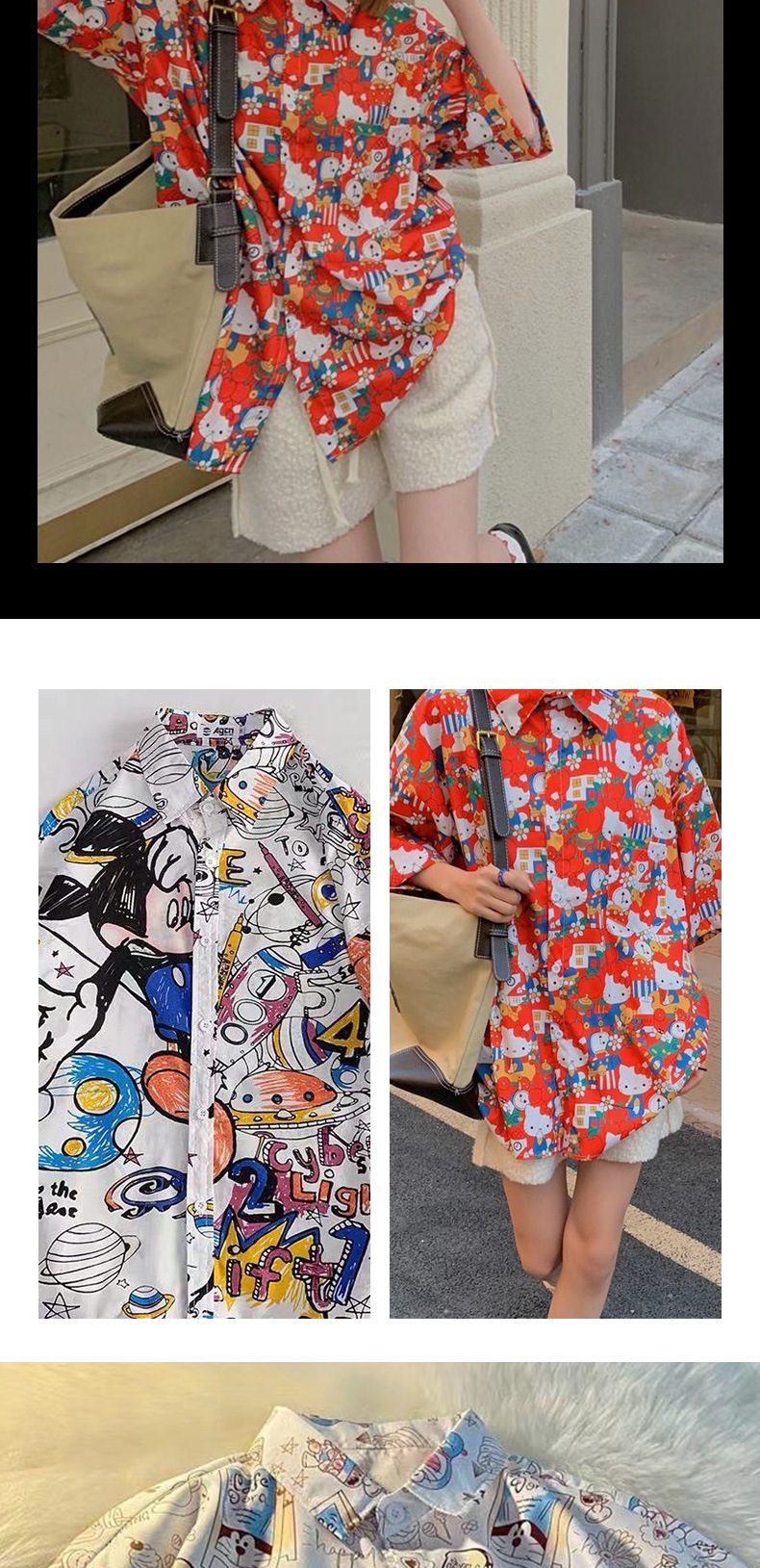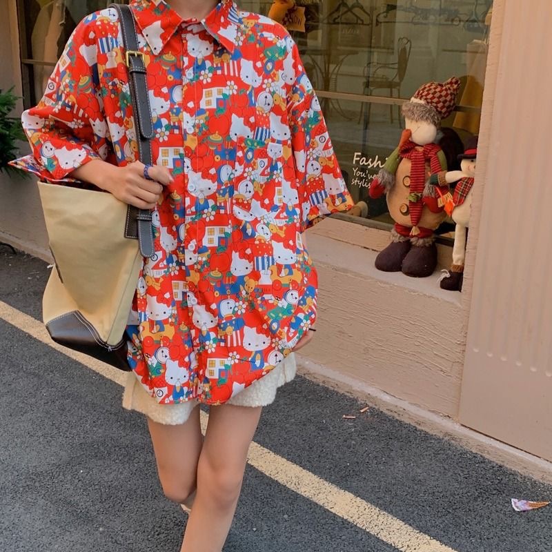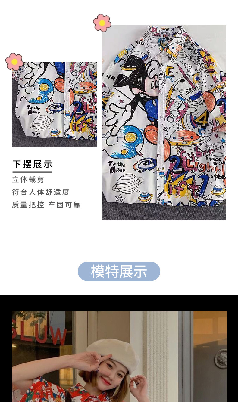 일본 부드러운 소녀 귀여운 재미있는 복고풍 만화 짧은 소매 셔츠 하와이안 스타일 대형 캐주얼 셔츠 남성과 여성스토어 가기