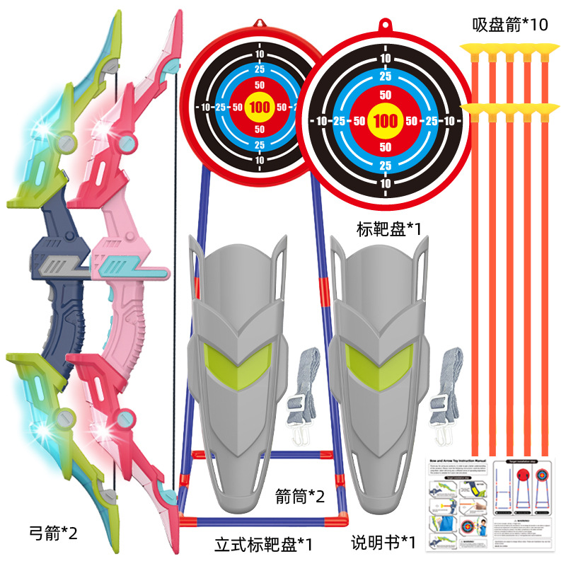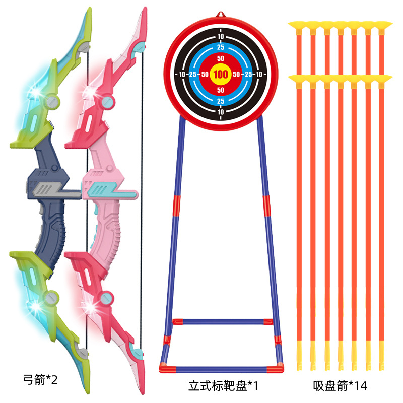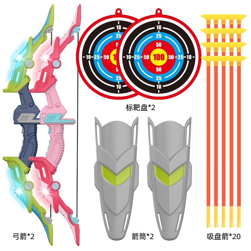 국경 간 어린이 활과 화살 세트 야외 스포츠 촬영 빛나는 빨판 활과 화살 큰 부드러운 머리 새총 양궁 소년