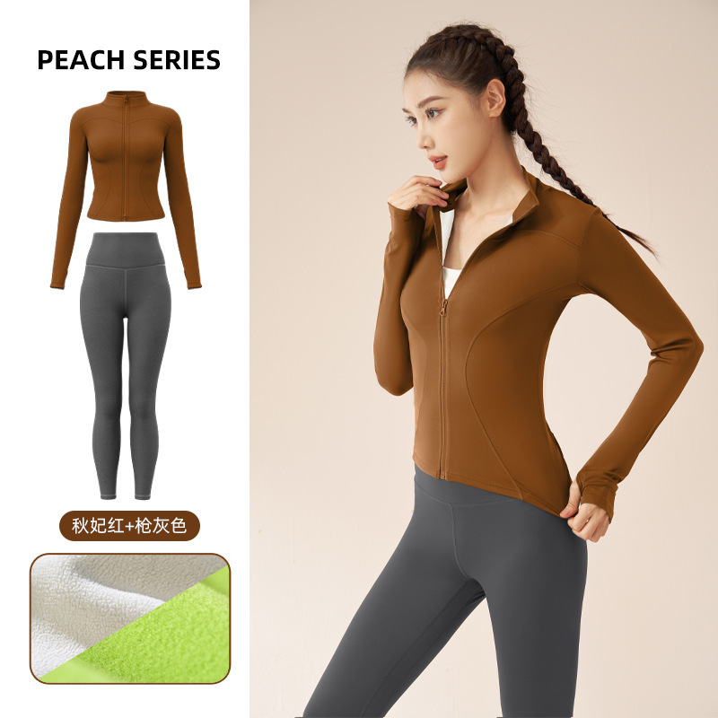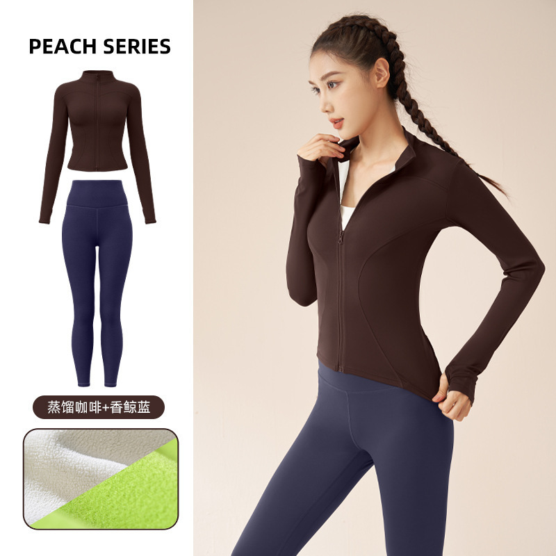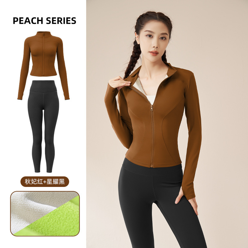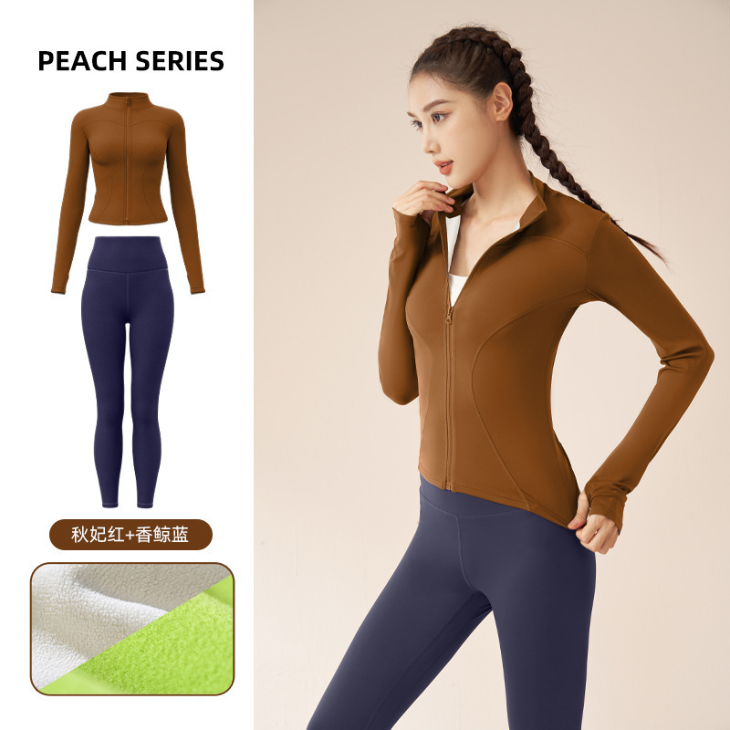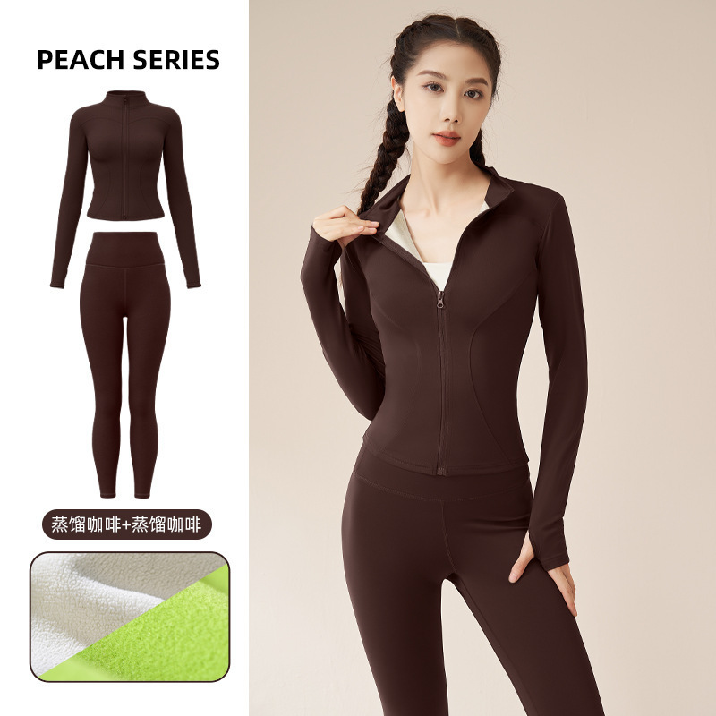 가을과 겨울 두꺼운 기모 요가 옷 세트 슬림 핏 누드 슬리밍 높은 탄성 방풍 따뜻한 피트니스 세트 여성스토어 가기