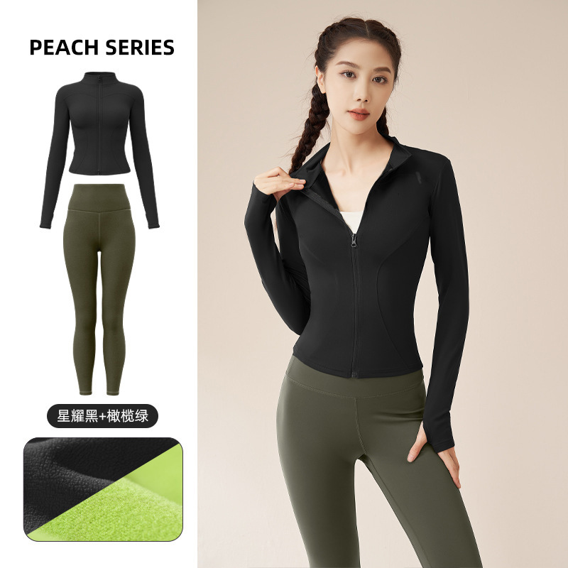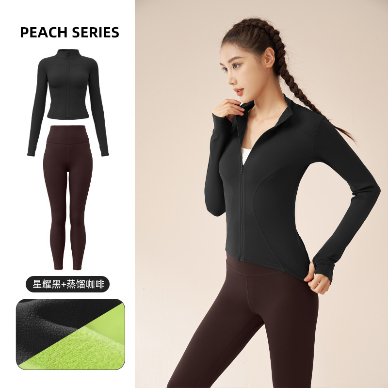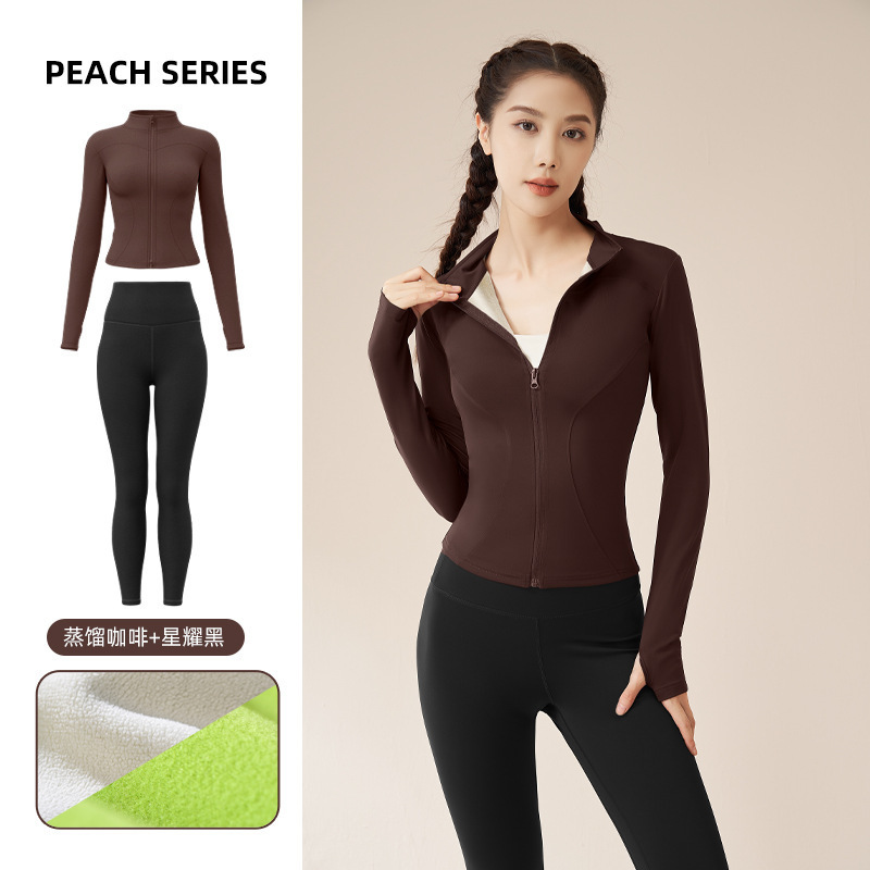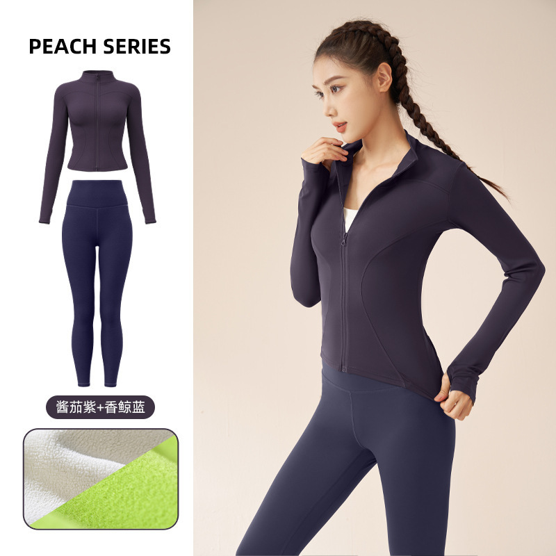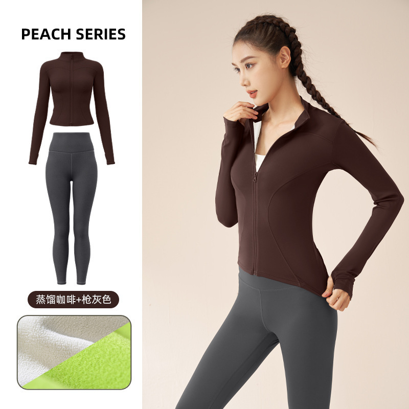 가을과 겨울 두꺼운 기모 요가 옷 세트 슬림 핏 누드 슬리밍 높은 탄성 방풍 따뜻한 피트니스 세트 여성스토어 가기
