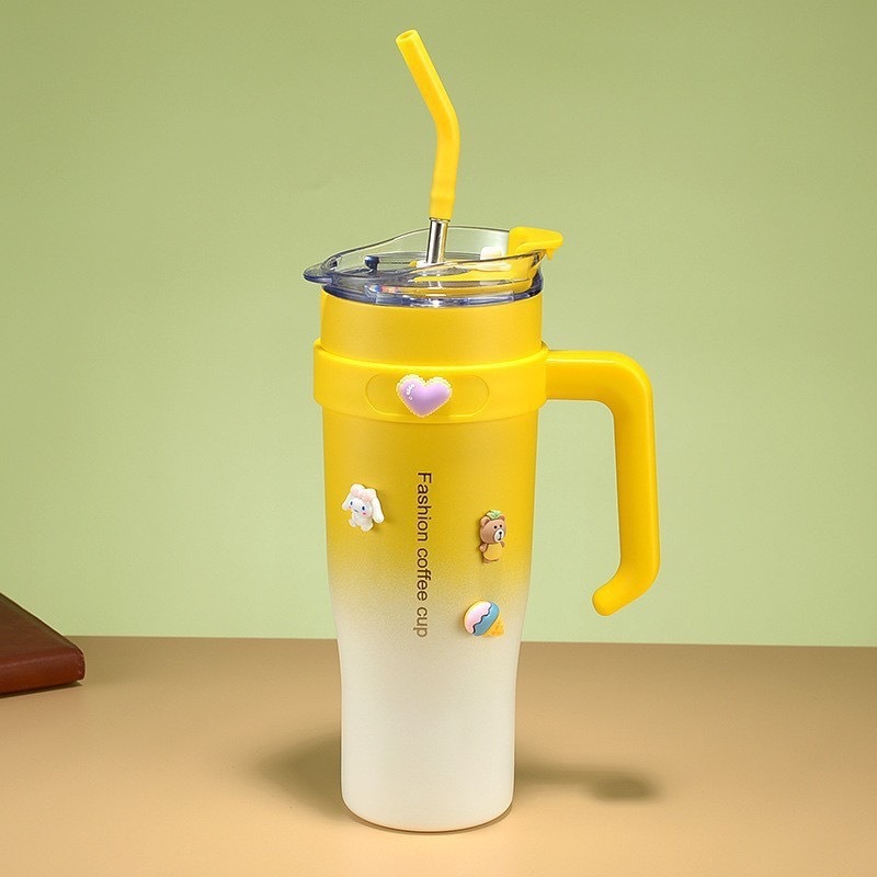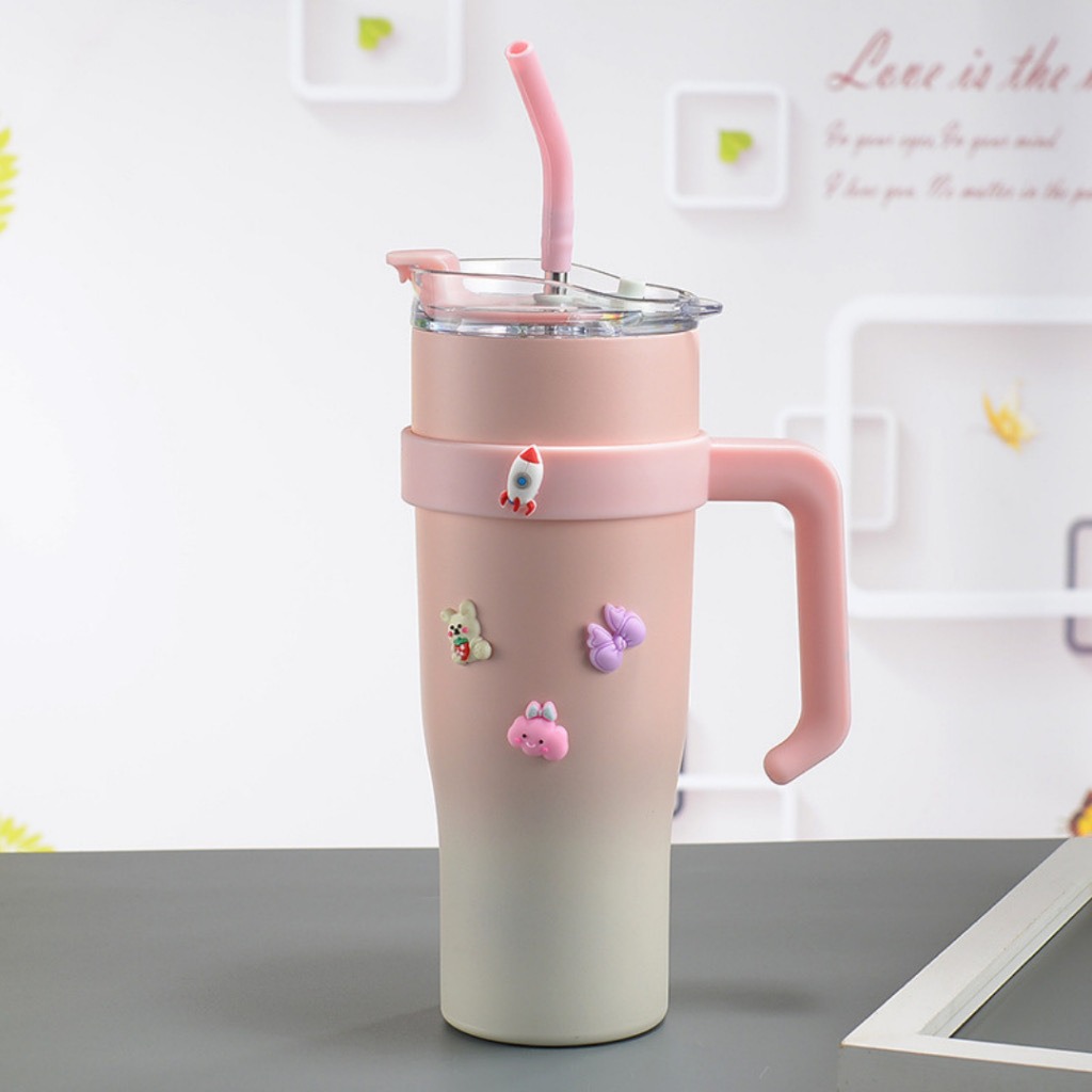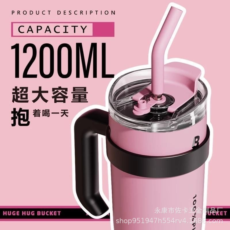 빅맥 보온병 컵 새로운 고급스러운 밀크 티 컵 대용량 40oz 자동차 컵 스테인레스 스틸 밀짚 아이스 컵