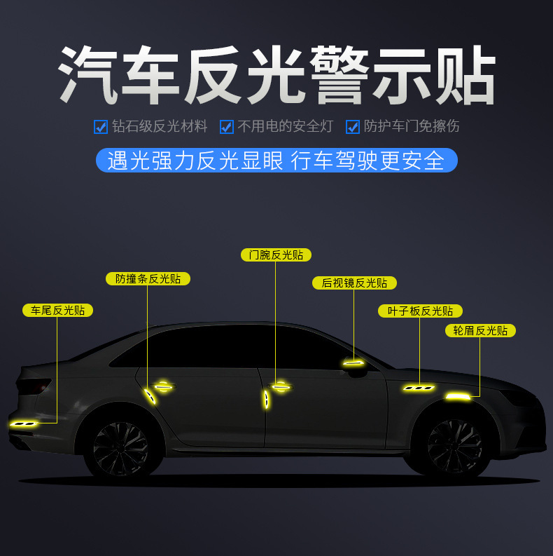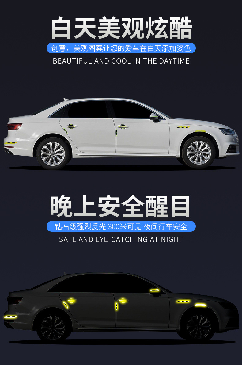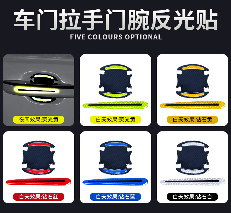 자동차 도어 보울 핸들 스티커 펜더 스티커 반사 스트립 휠 눈썹 안전 경고 스티커 충돌 방지 스트립 자체 접착스토어 가기