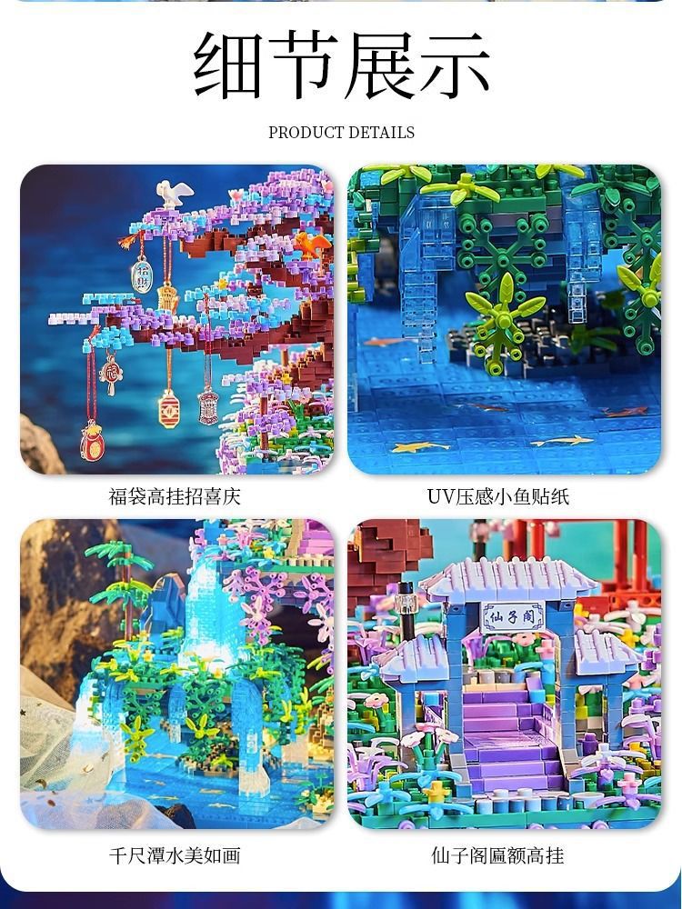 레고와 호환되는 요정의 궁전, 타오샤탄 장식품, 고대 스타일 블록 장난감, 선물, 수제 조립식 오두막 장면, 교육용스토어 가기