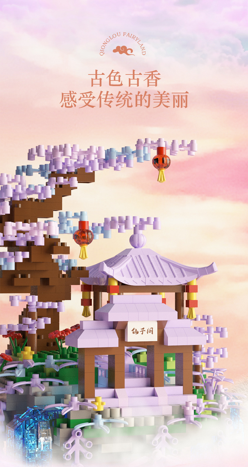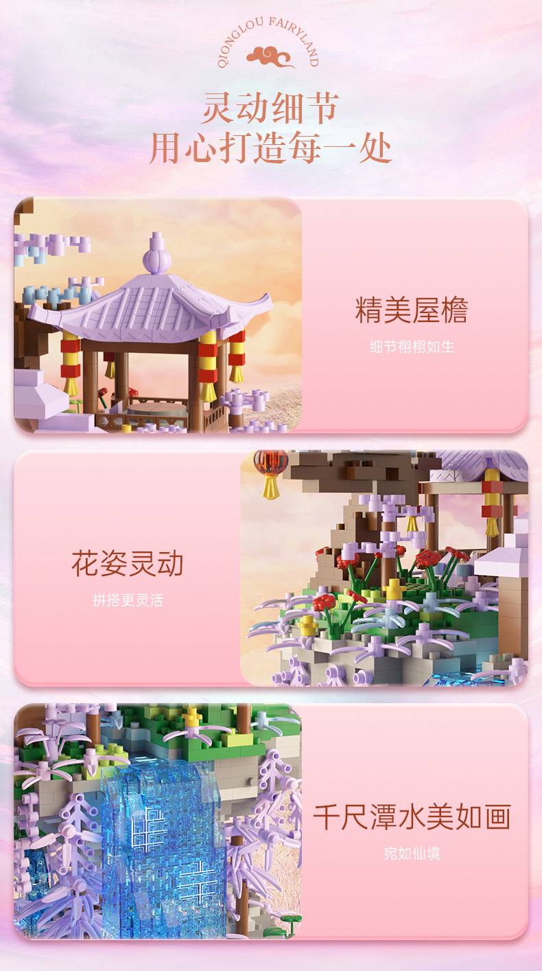레고와 호환되는 요정의 궁전, 타오샤탄 장식품, 고대 스타일 블록 장난감, 선물, 수제 조립식 오두막 장면, 교육용