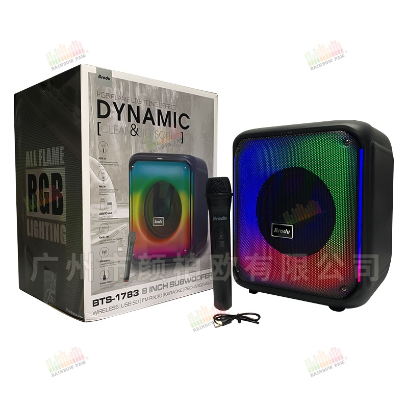 KTS 공장 도매 BTS 시리즈 BTS-1783 RGB 컬러 조명 야외 휴대용 8 인치 블루투스 스피커