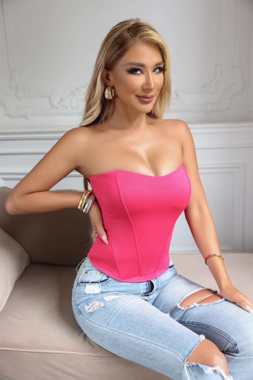 가슴 패드가 내장된 피쉬본 바디 쉐이핑 조끼, 여성스러운 슬림핏 하이웨이스트 유럽과 미국 스타일의 패셔너블한 브라, 피쉬본 튜브탑