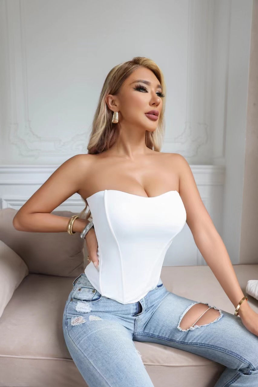 가슴 패드가 내장된 피쉬본 바디 쉐이핑 조끼, 여성스러운 슬림핏 하이웨이스트 유럽과 미국 스타일의 패셔너블한 브라, 피쉬본 튜브탑스토어 가기