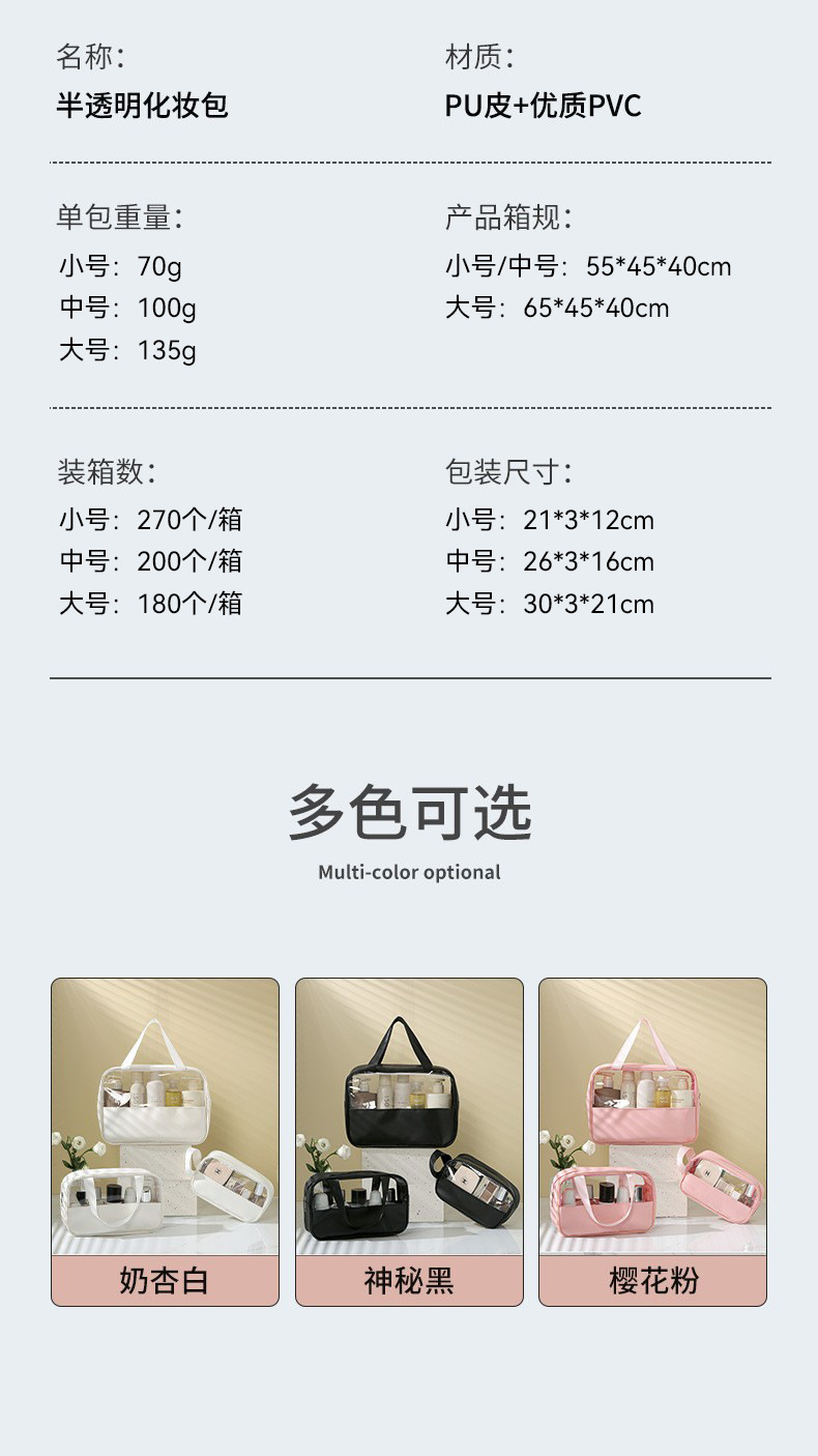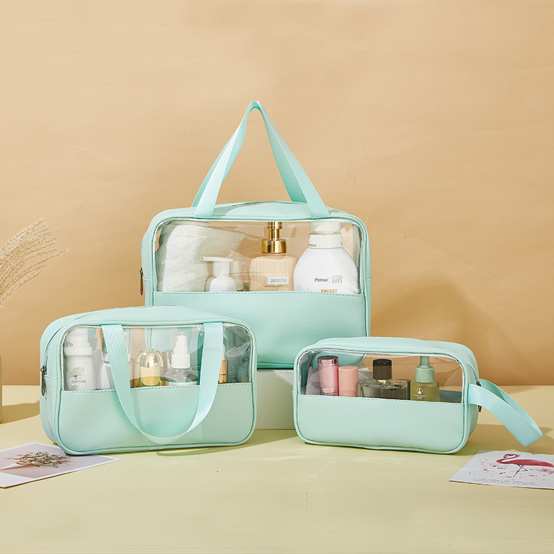 공장 직접 공급 기성품 보관 여행 3 피스 세트 방수 세면 용품 가방 대용량 보관 가방 pu 젖빛 화장품 가방