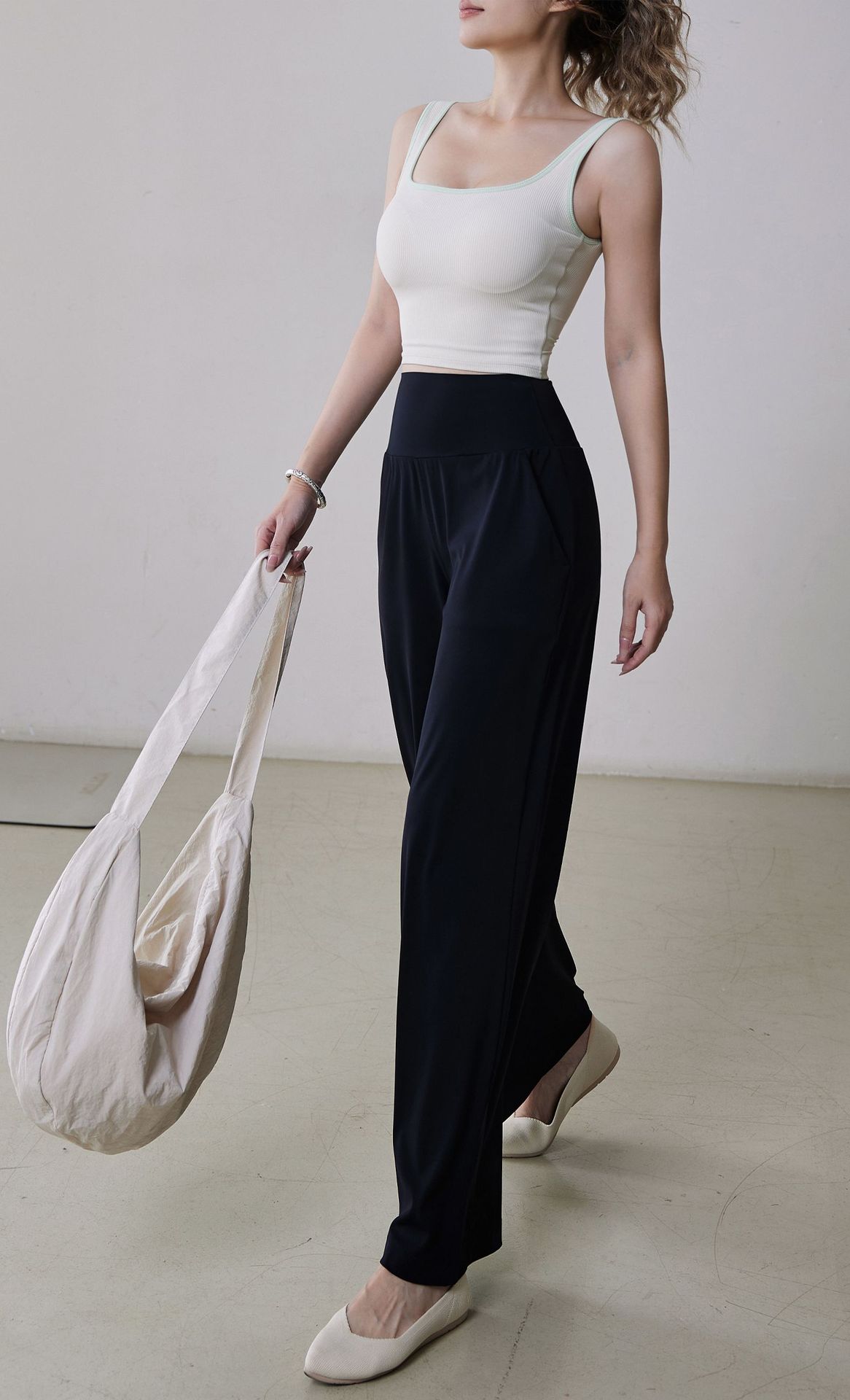 요가 스포츠 와이드 팬츠, 가볍고 누드, 통기성, 캐주얼한 하이웨이스트 요가 팬츠, 드레이피한 여성용 워킹 스트레이트 팬츠스토어 가기