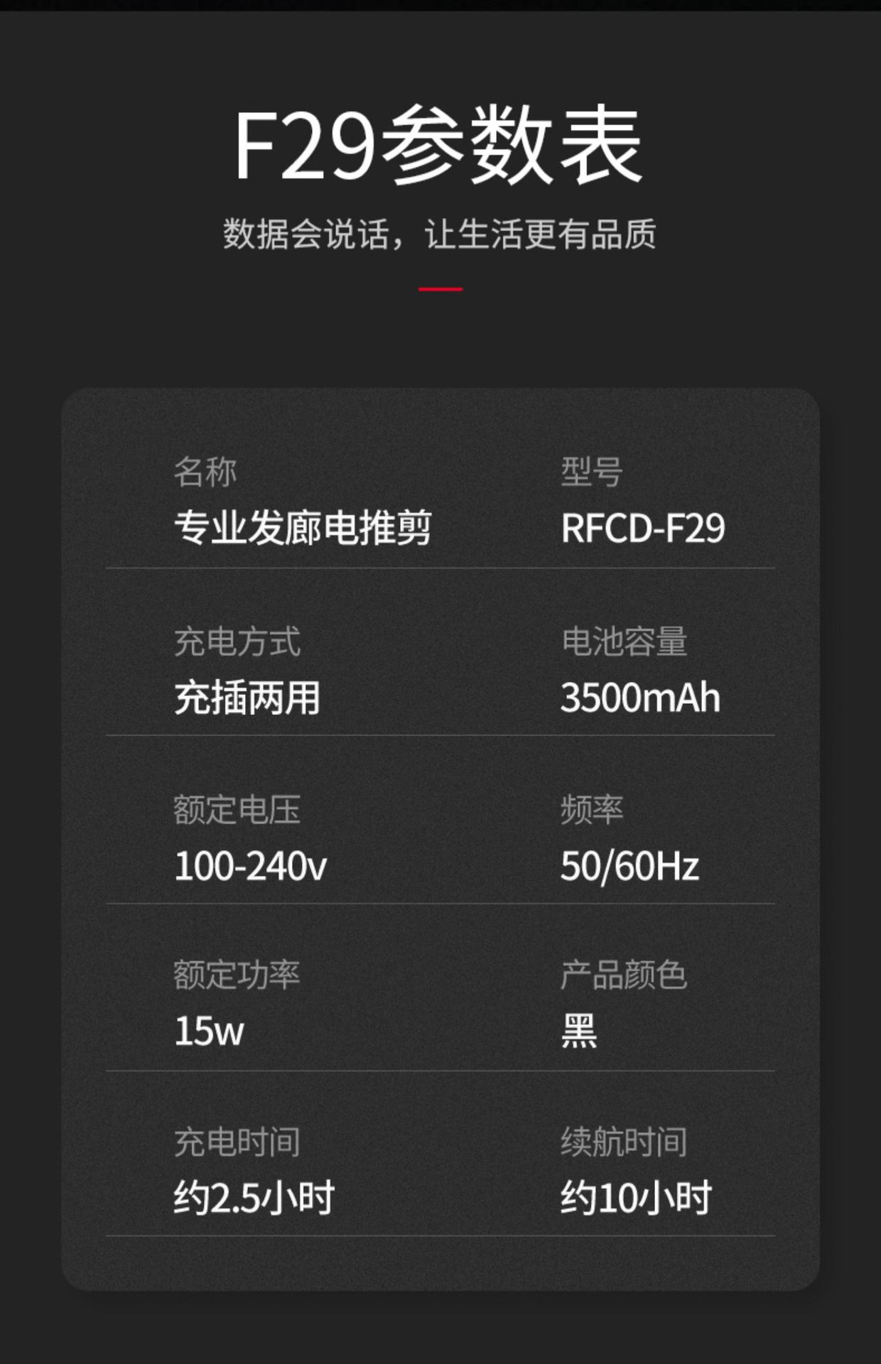 Riwei 전기 머리 깎기 머리 깎기 충전식 전기 깎기 이발소 머리 절단 면도기 홈 F29