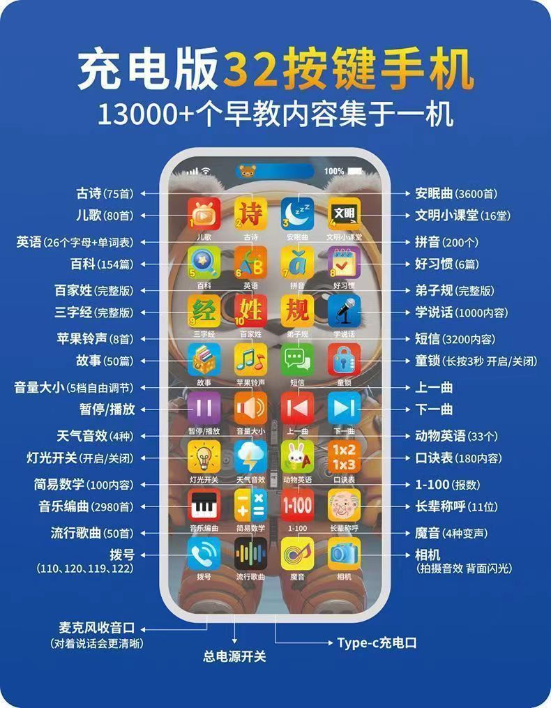 인형 조기 교육 휴대 전화 장난감 시뮬레이션 터치 스크린 어린이 아기 계몽주의 교육 전화 충전은 0-3 세스토어 가기
