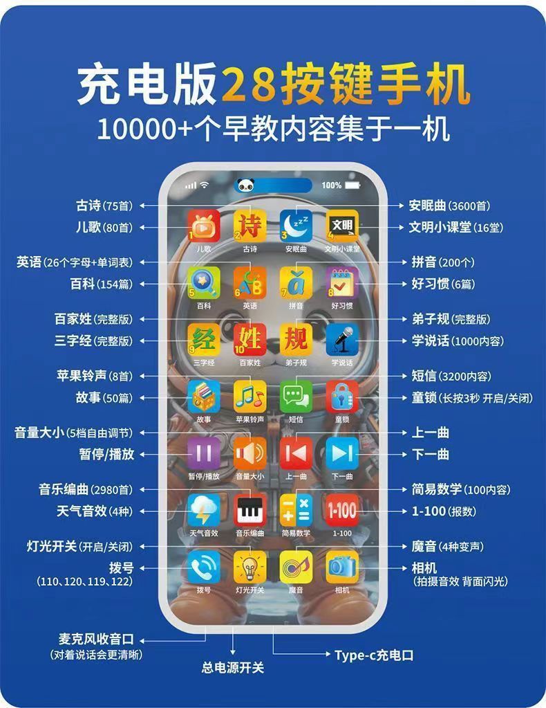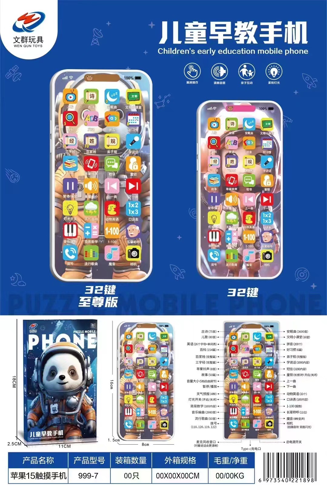 • 999-7 어린이 조기 교육 휴대 전화 [스페이스 팬더]